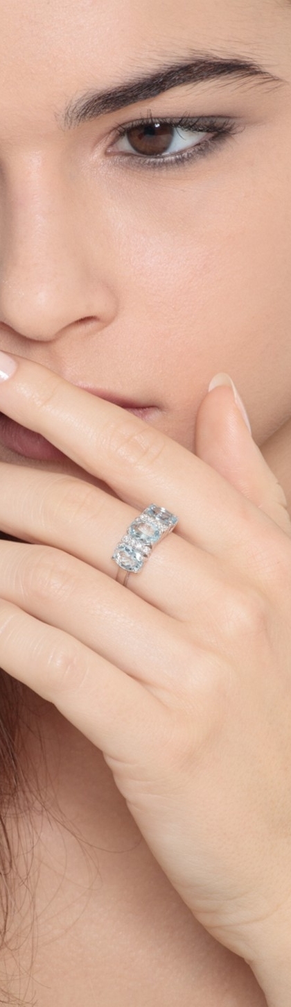 Bague or blanc 18k avec aigues-marines ovales et diamants