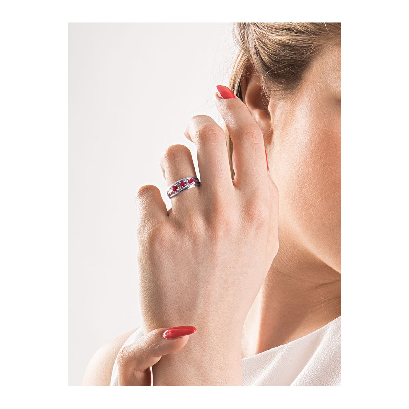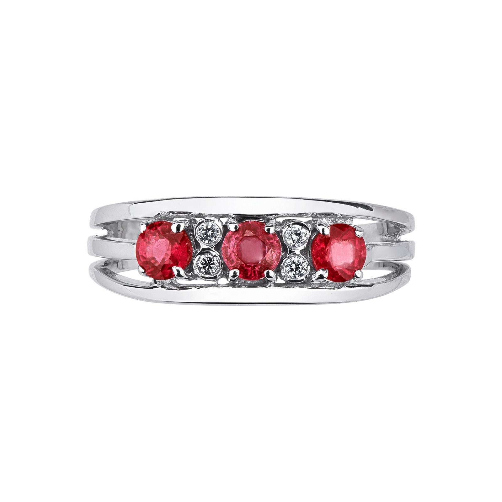 Bague trilogie en Or Blanc 18k avec rubis et diamants