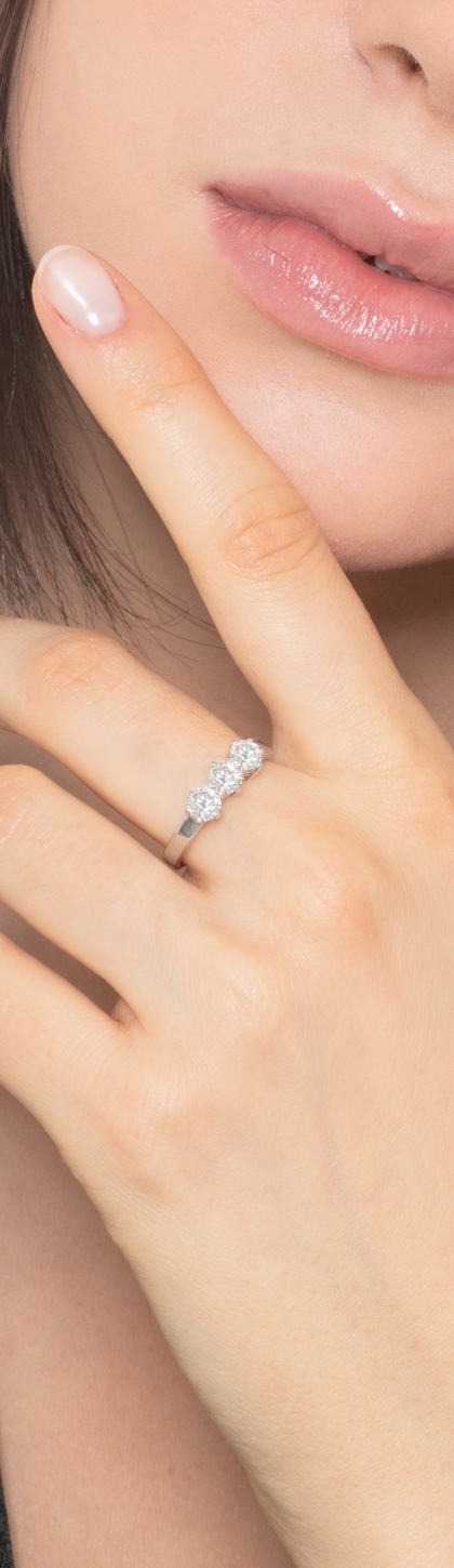 Bague trilogy en or blanc 18k avec diamants taille brillant 0.90 ct