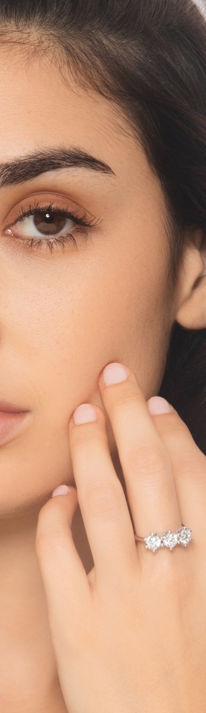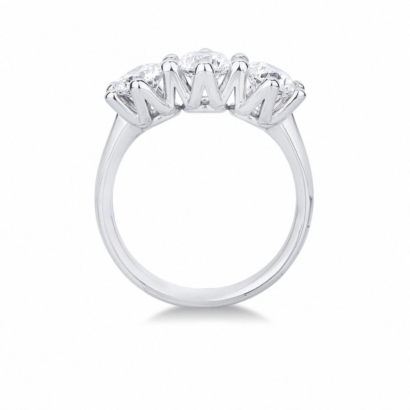 Bague en or blanc 18 carats avec trois diamants taille brillant, couleur H et purete VS. Un classique intemporel qui symbolise l’amour
