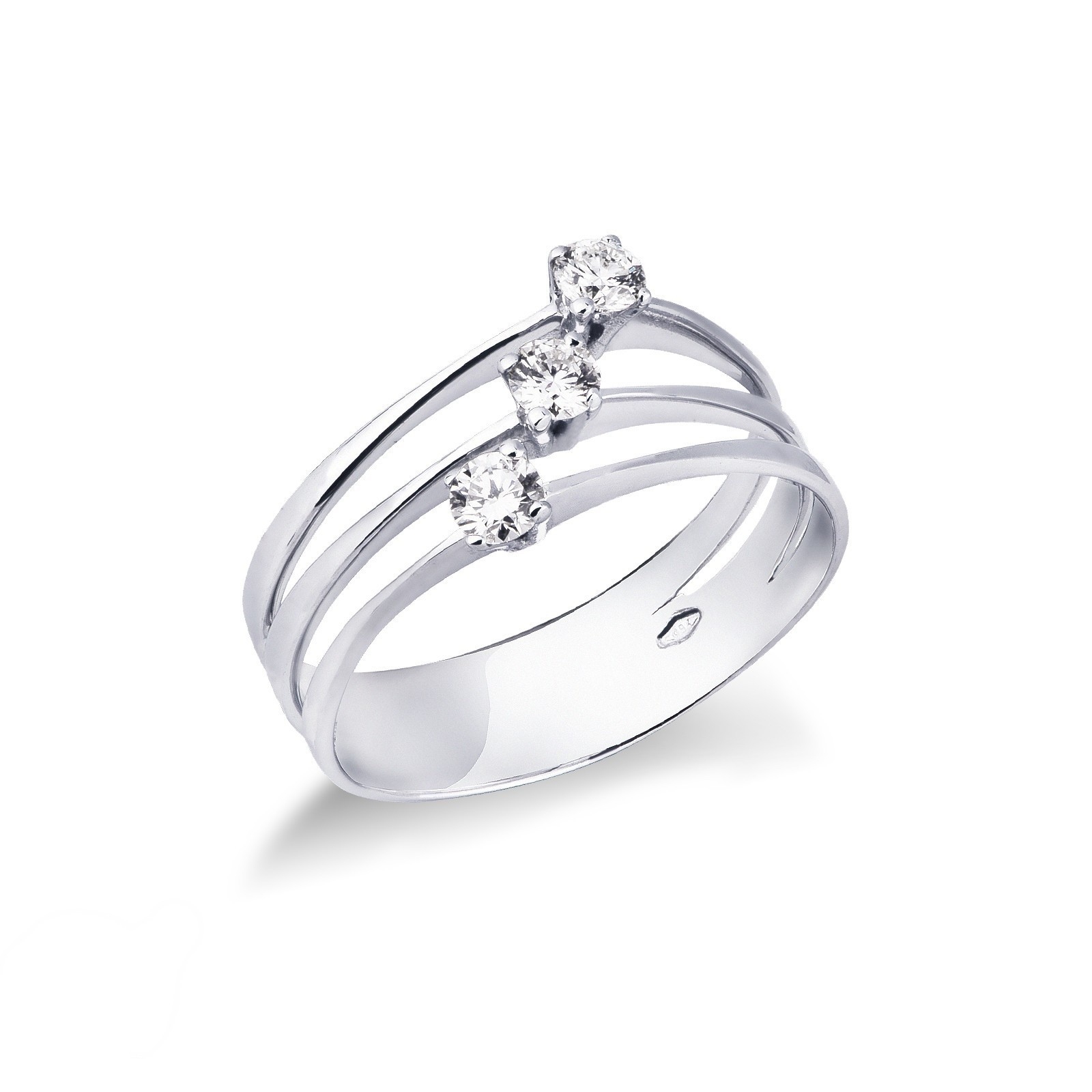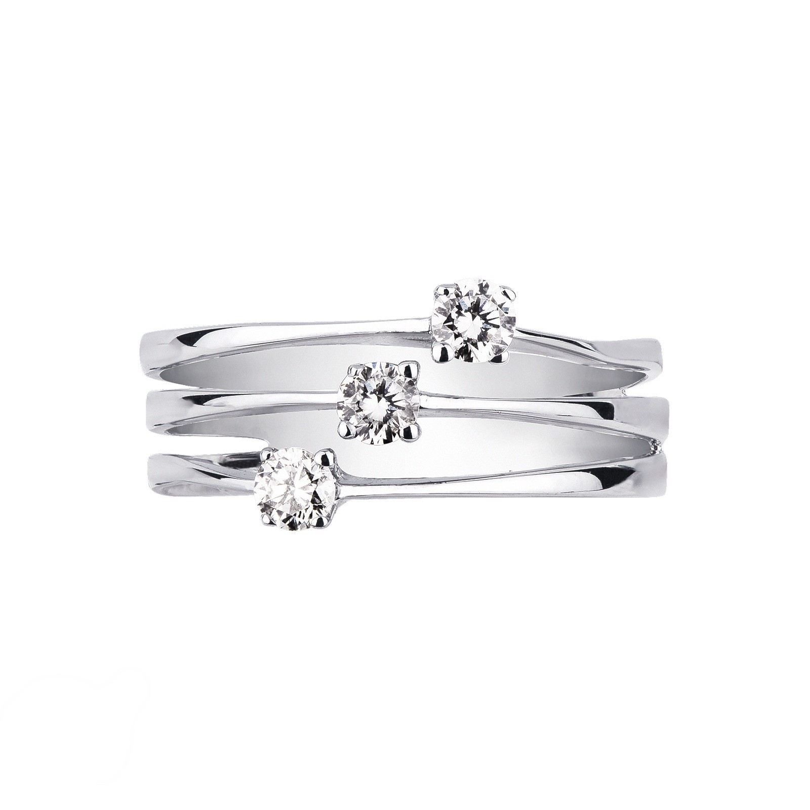 Bague trois anneaux en or blanc 18k avec trois diamants 0,30 ct