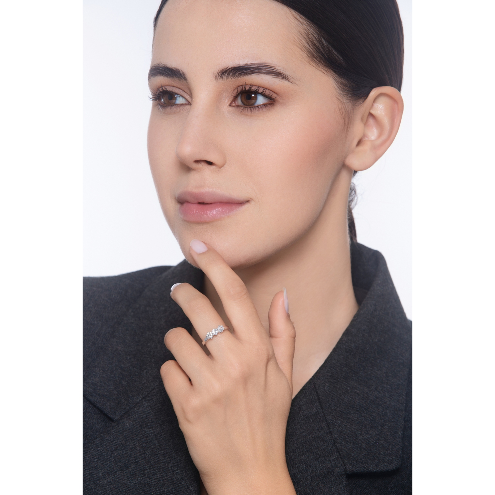 Demi alliance de fiançailles avec 3 diamants en or blanc 18k
