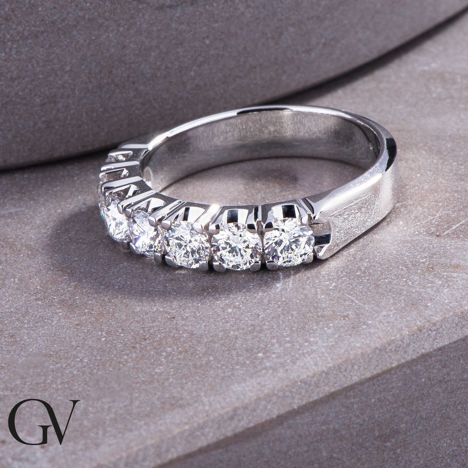 Alliance demi tour en or blanc 18k avec 7 diamants 1.40 ct