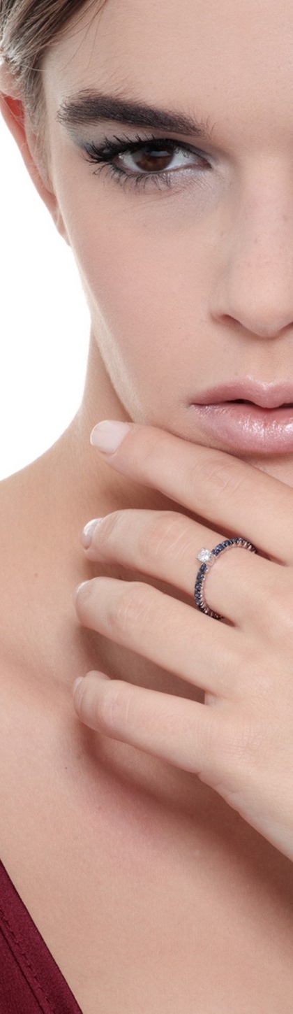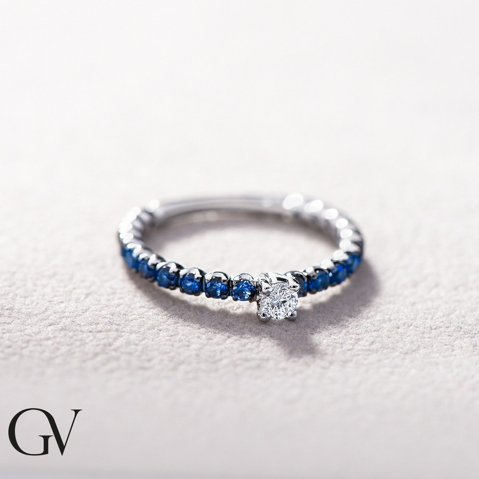 Alliance en or blanc avec diamant et saphirs