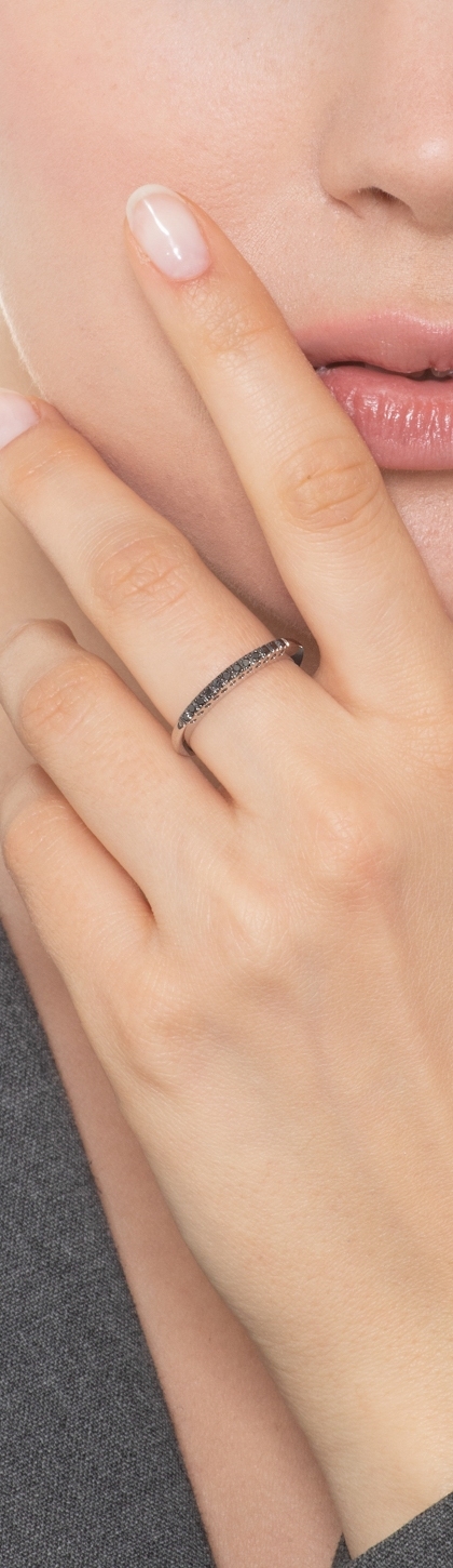 Bague alliance en or blanc 18k avec diamants noirs