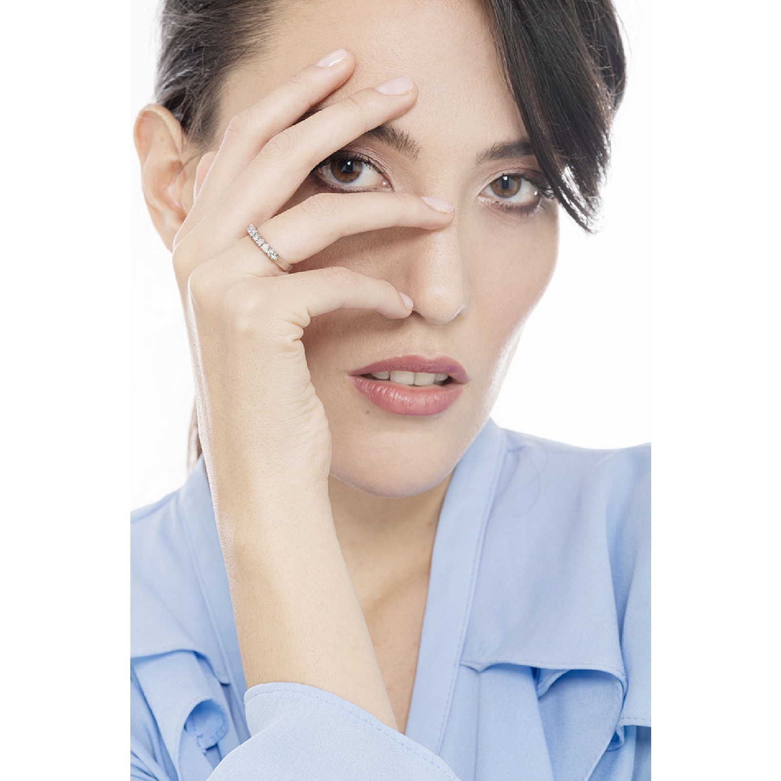 Bague demi-tour 7 diamants 0.25 ct en or blanc 18k