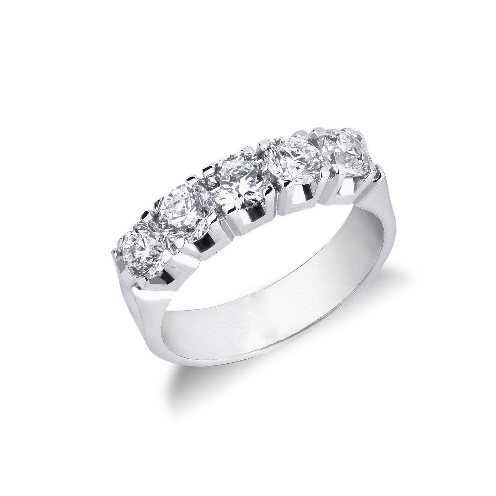 Demi-alliance or blanc à 5 diamants 1.50 ct