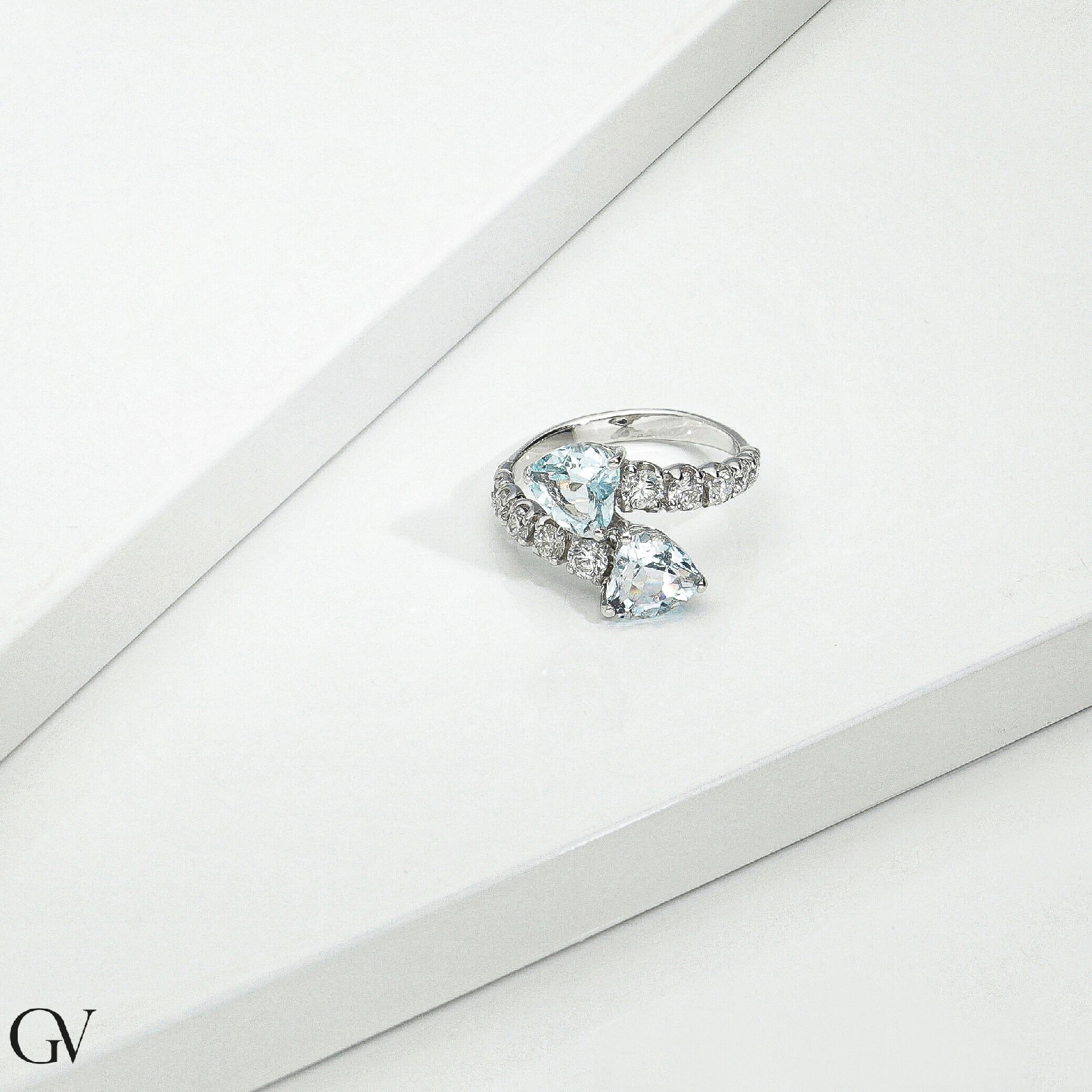 Bague contrarié en or blanc 18k avec aquamarines et diamants