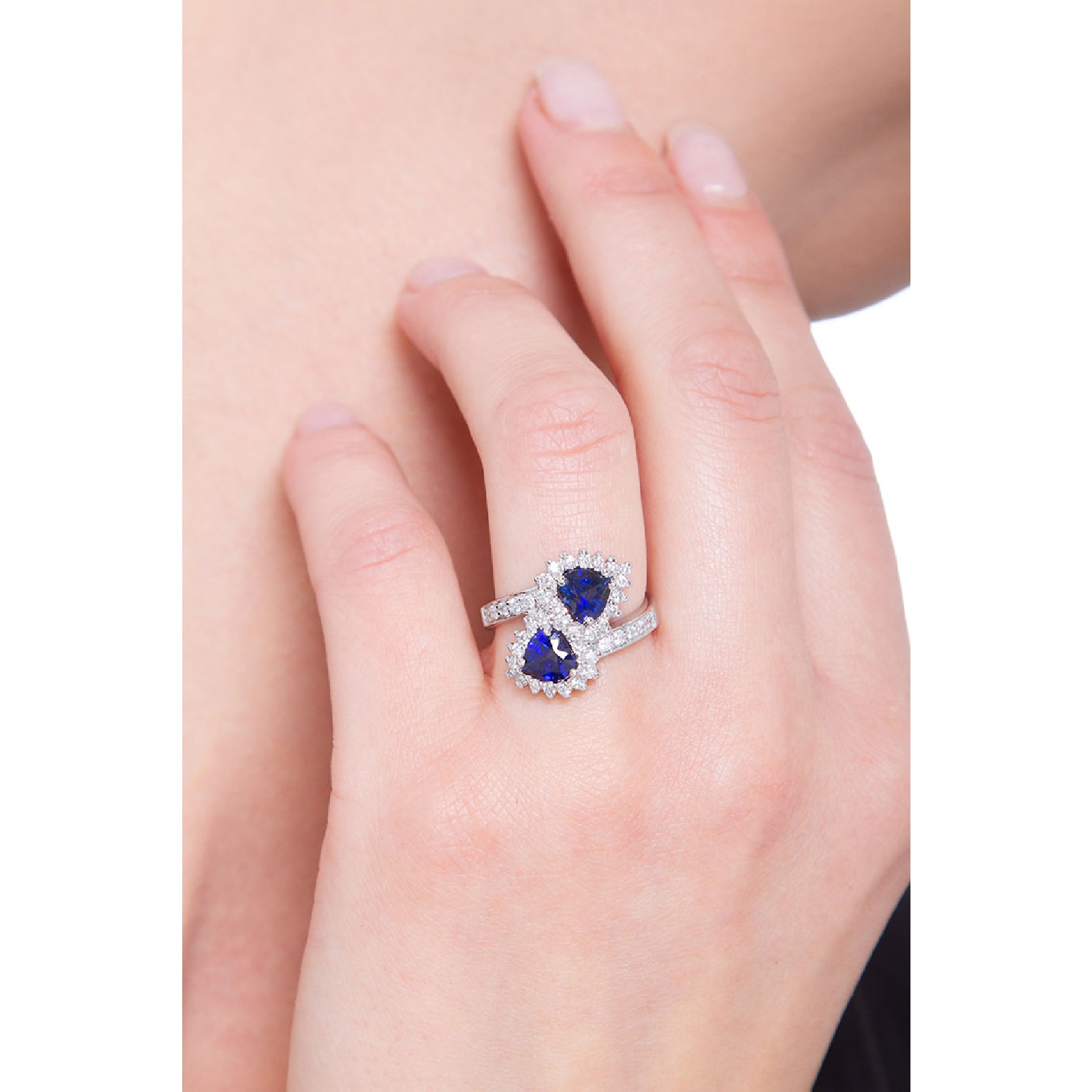 Bague contrarié en or blanc avec saphirs cœur et diamants