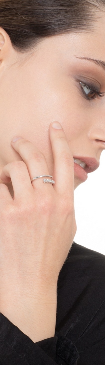 Bague contrarié ouverte or blanc 18k avec diamants
