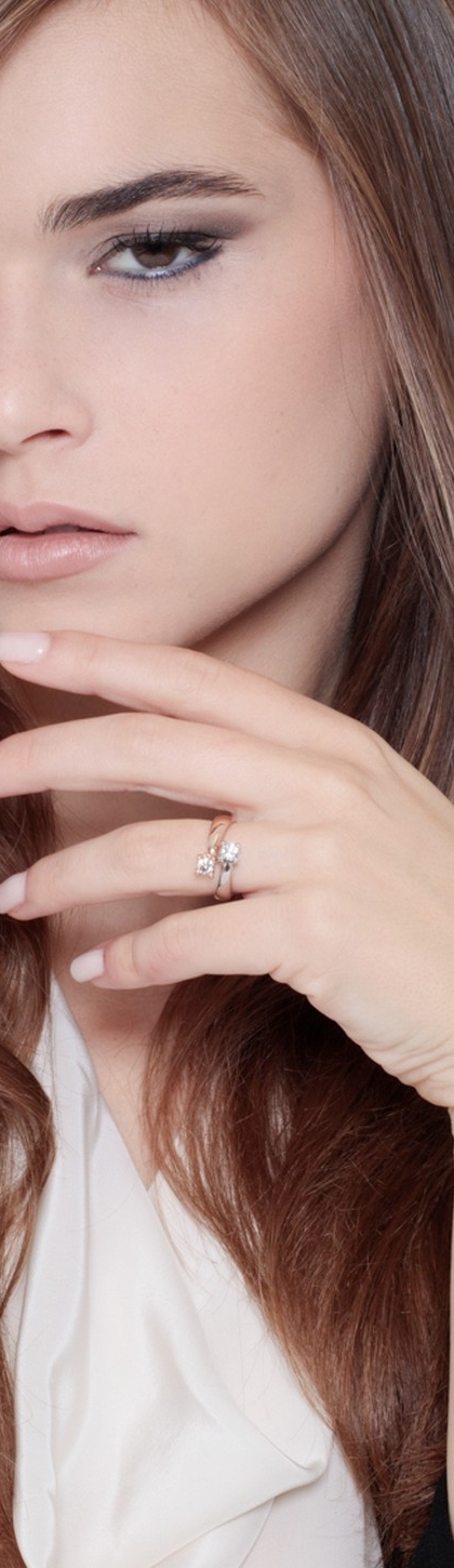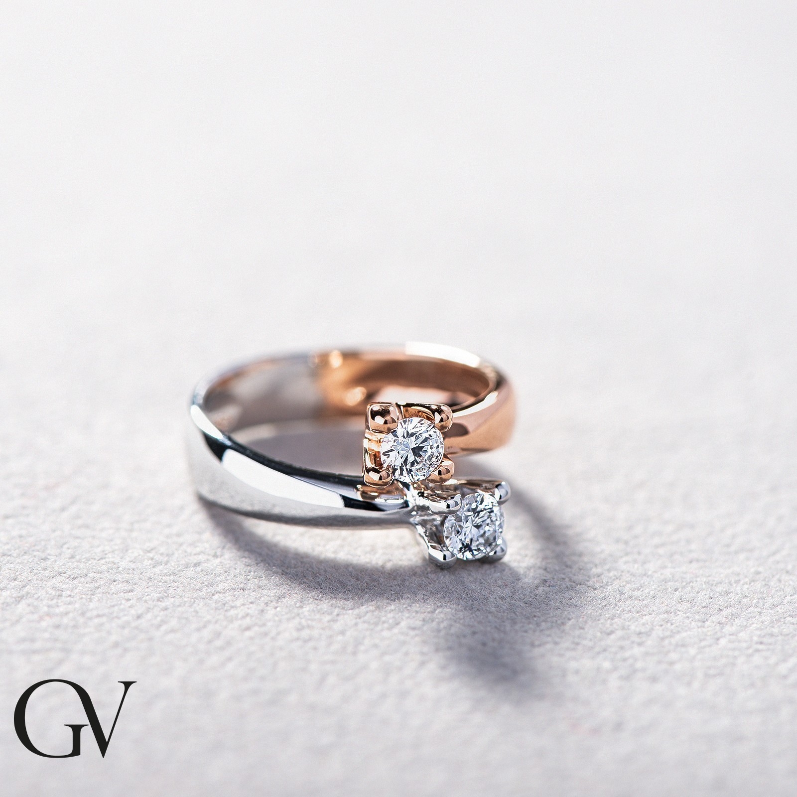 Bague Duo en Or Blanc et Rose 18k avec Diamants