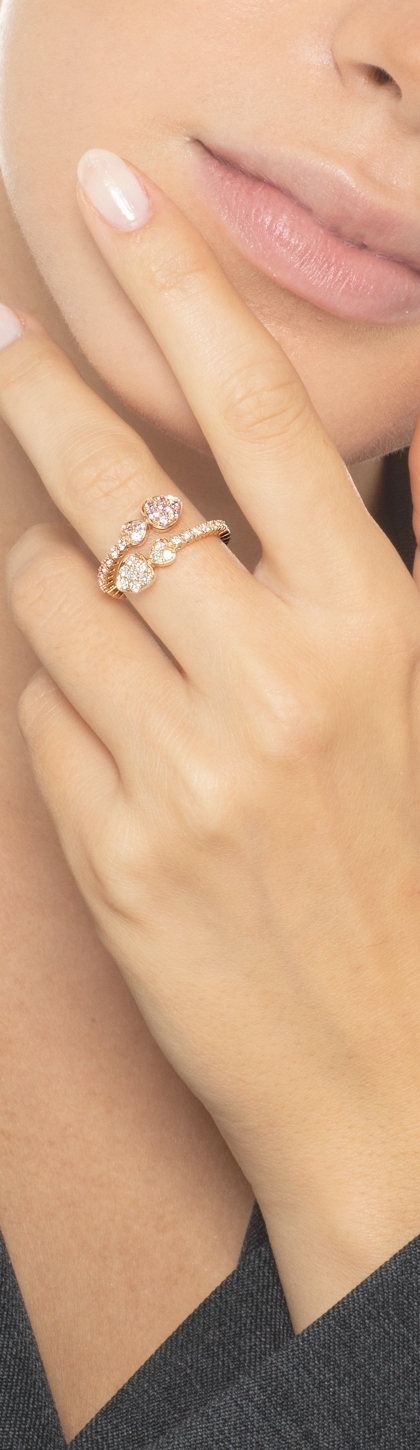 Bague Semi Rigide en Or Rose 18K avec Cœurs Diamants et Saphirs