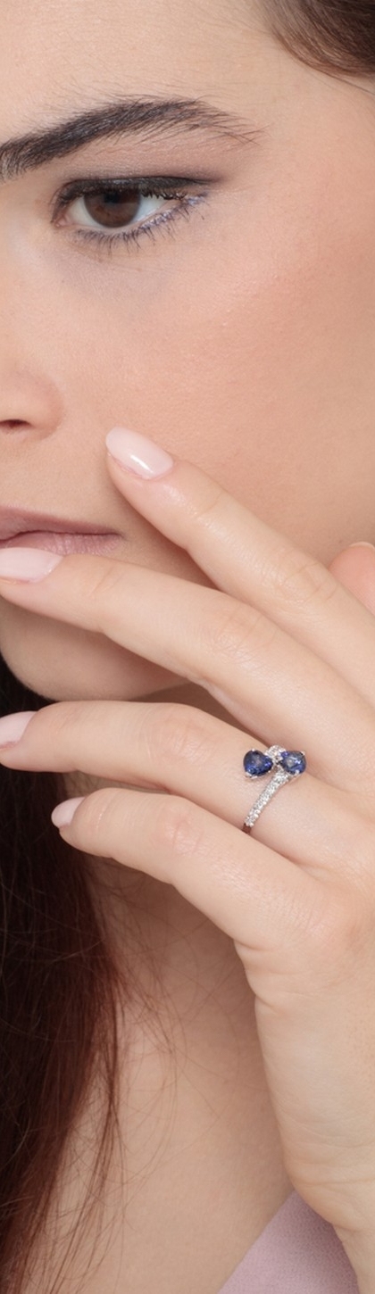 Bague Toi et Moi en or 18k et 2 saphirs bleus à coeur