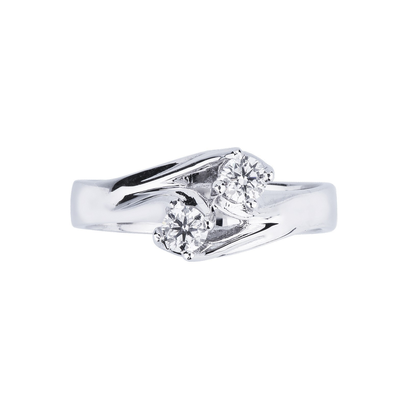 Bague Toi et Moi en Or Blanc 18k avec Deux Diamants