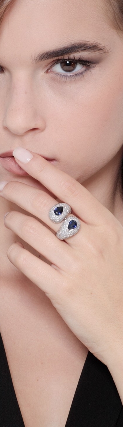 Bague Toi et Moi en Or Blanc 18k avec Saphirs Bleus et Diamants
