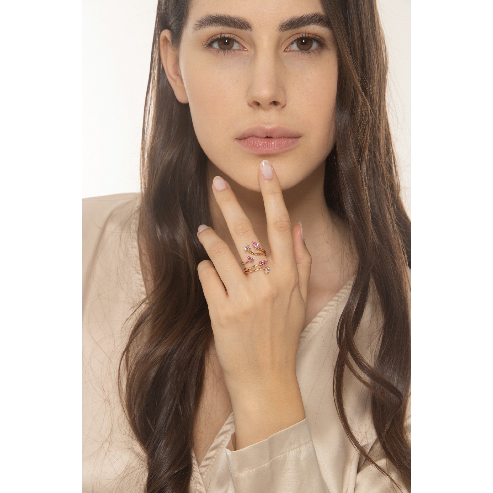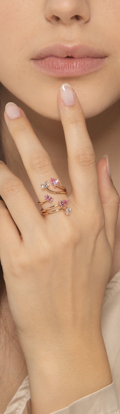 Bague toi et moi en Or Rose 18k avec Zircons Roses et Blancs