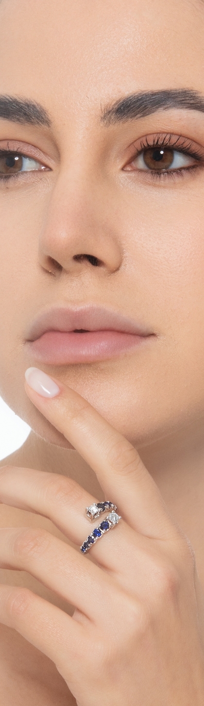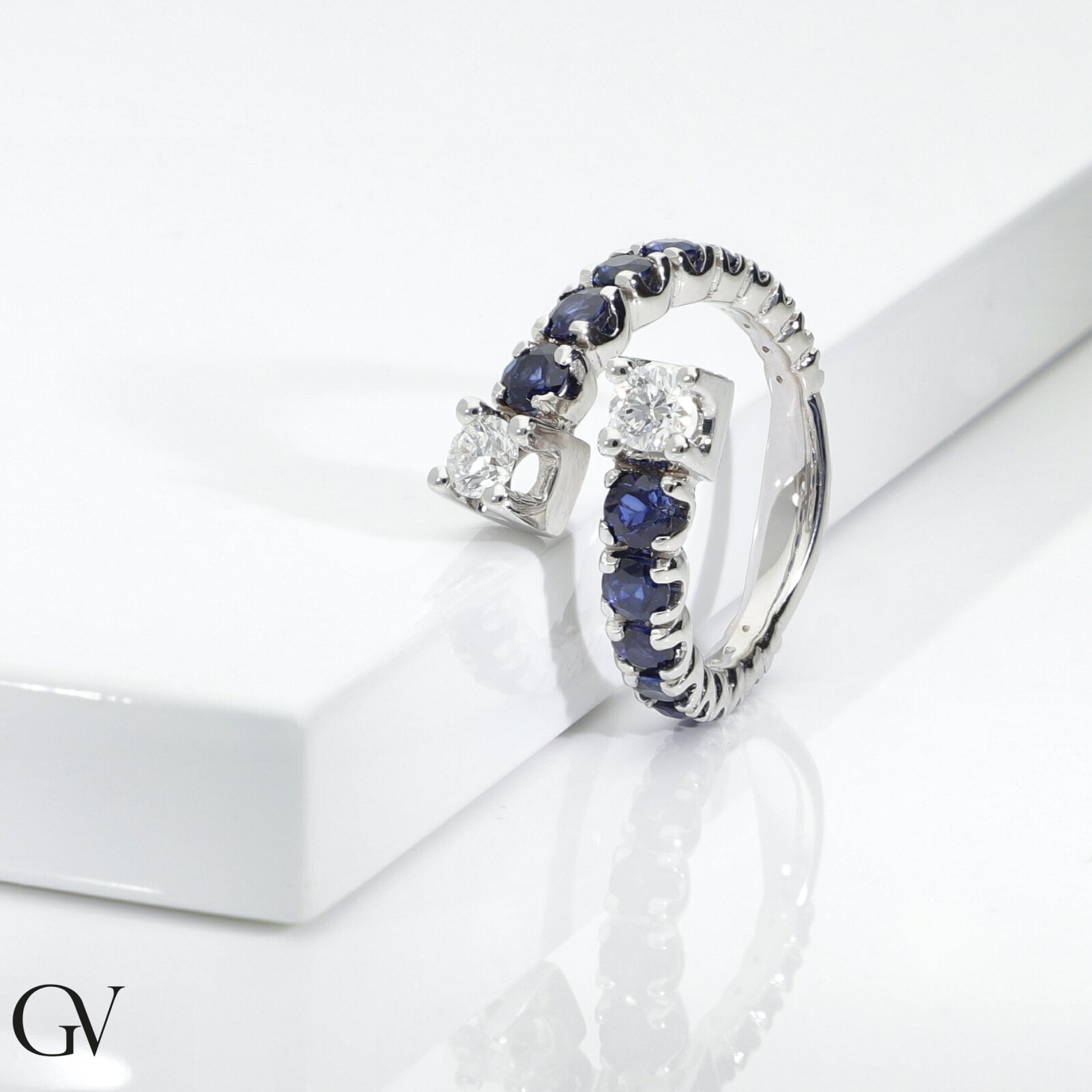 Bague toi et moi or blanc 18 carats avec saphirs bleus et diamants