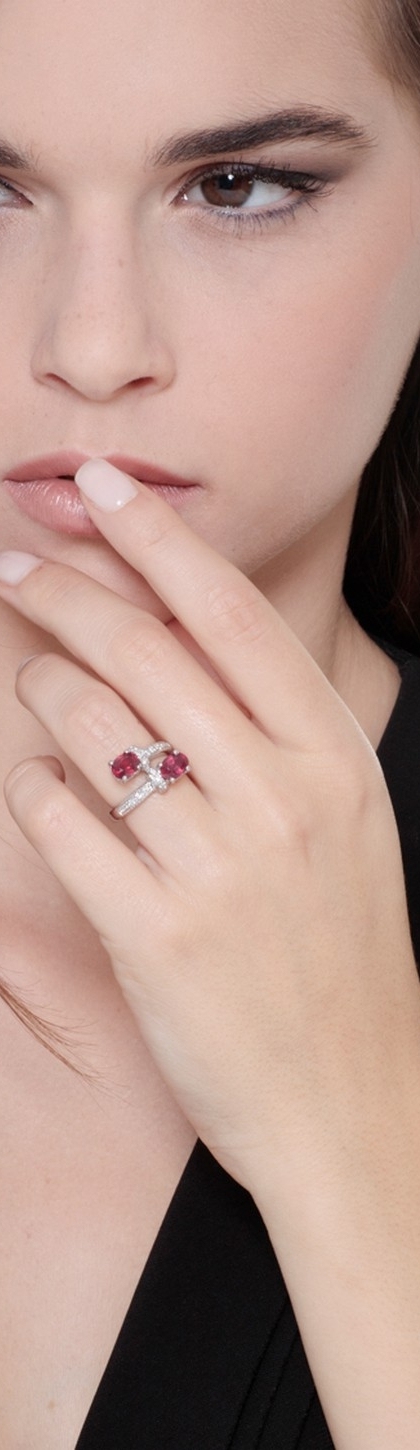 Bague tu y yo contrarié en or blanc 18k rubis taille ovale