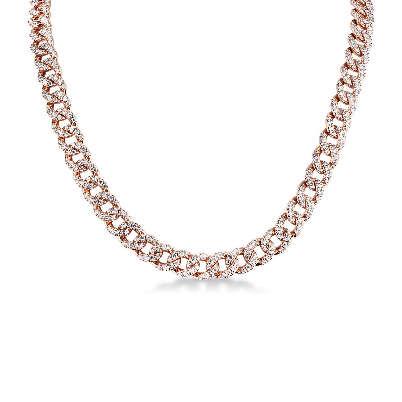 Collier en maille gourmette en or rose 18 carats avec des diamants