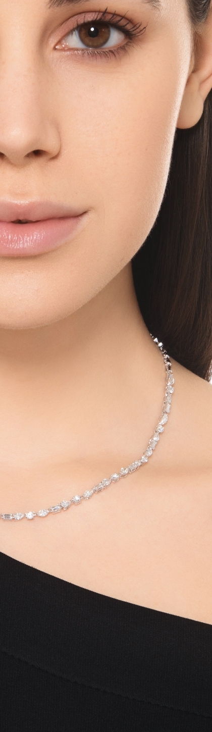 Collier Diamants Or Blanc Tailles Goutte Navette Baguette