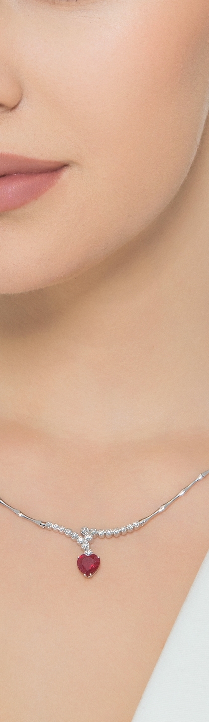 Collier en or blanc 18 carats avec un rubis à cœur