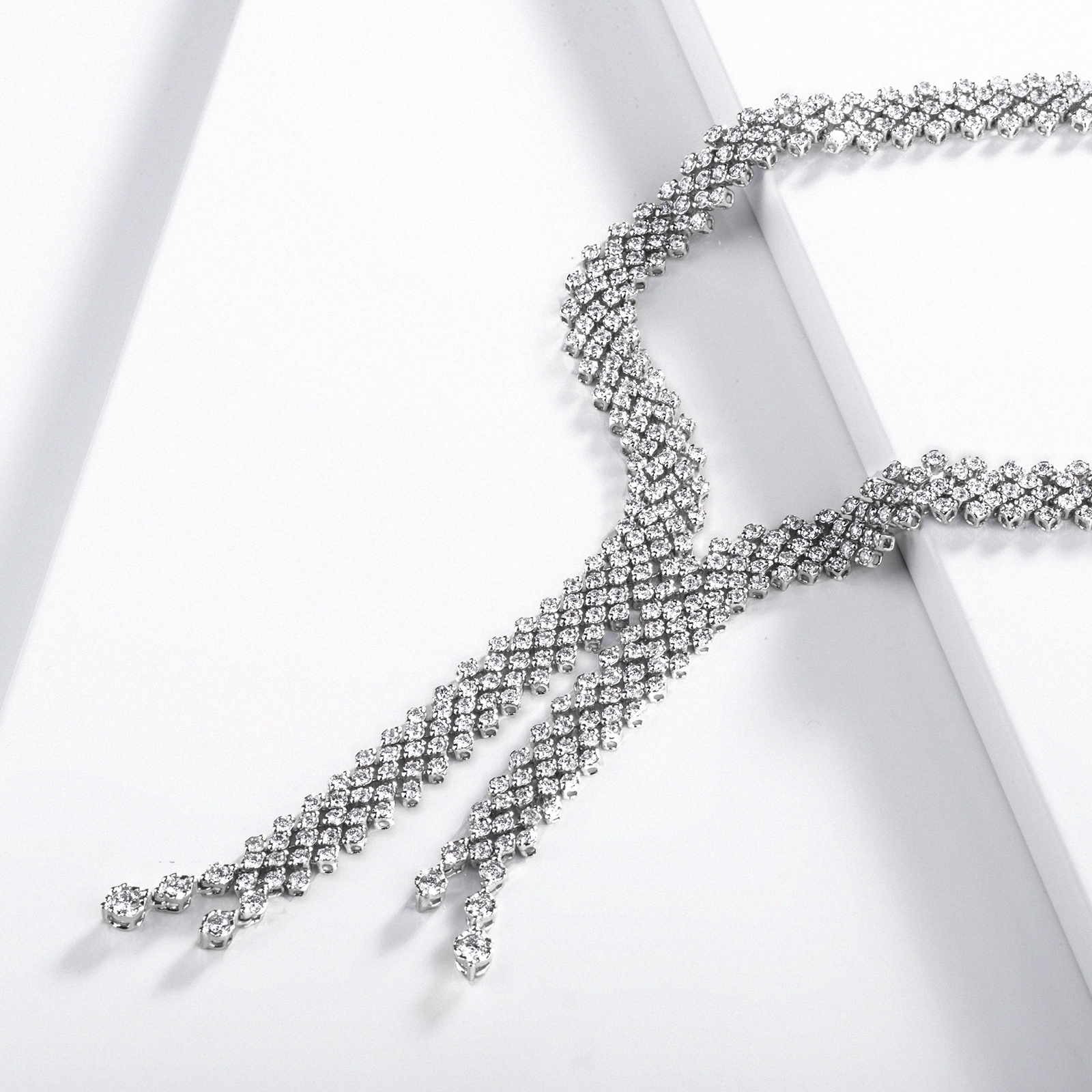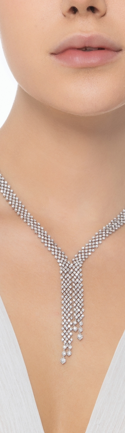 Collier en Y design en or blanc 18k avec pavé de diamants