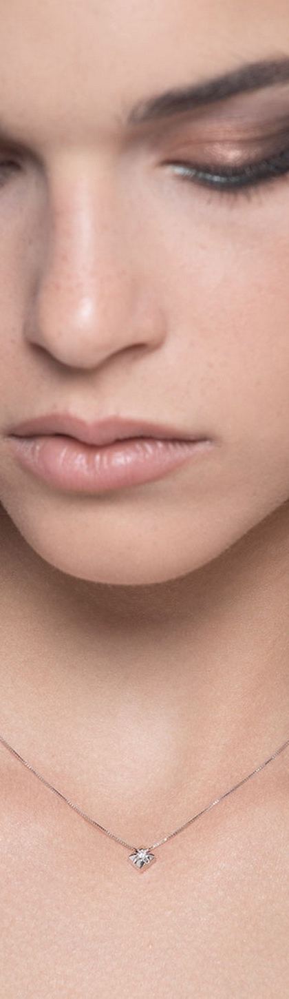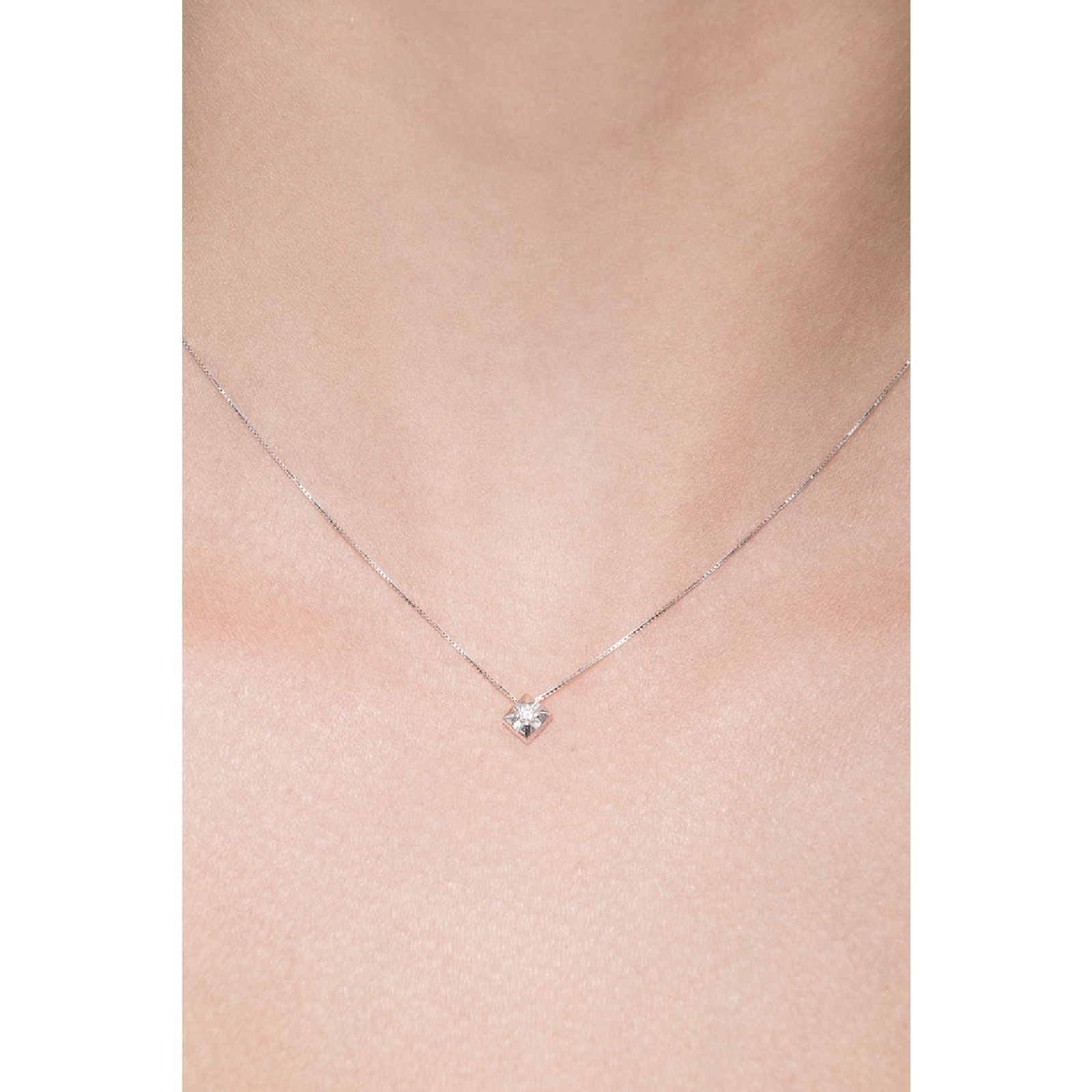 Collier pendentif solitaire en or blanc 18 ct avec diamant 0.04 ct