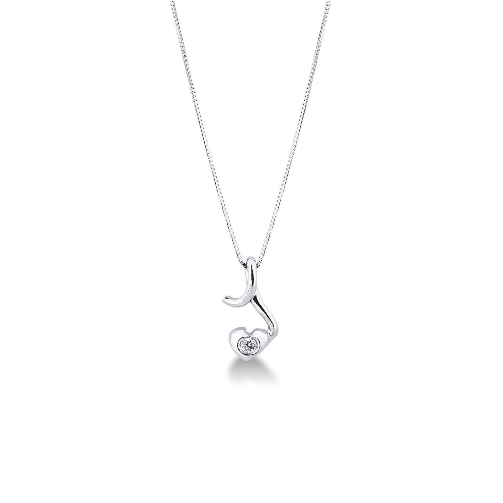 Collier solitaire en forme cœur or blanc 18k