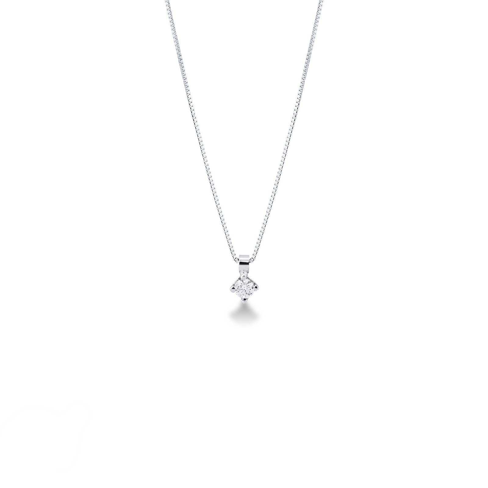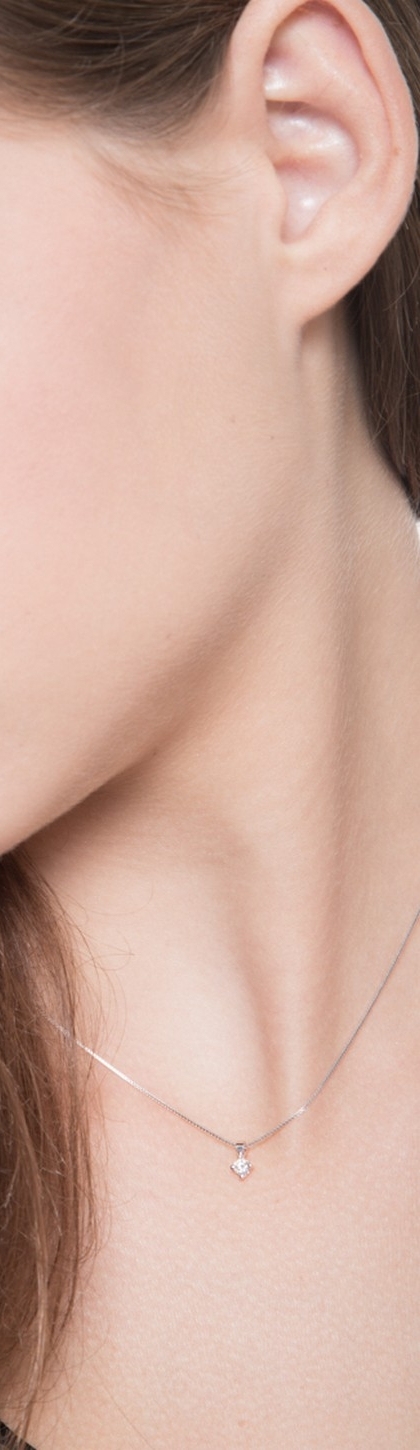 Collier solitaire en or blanc 18k avec diamant 0.12 ct
