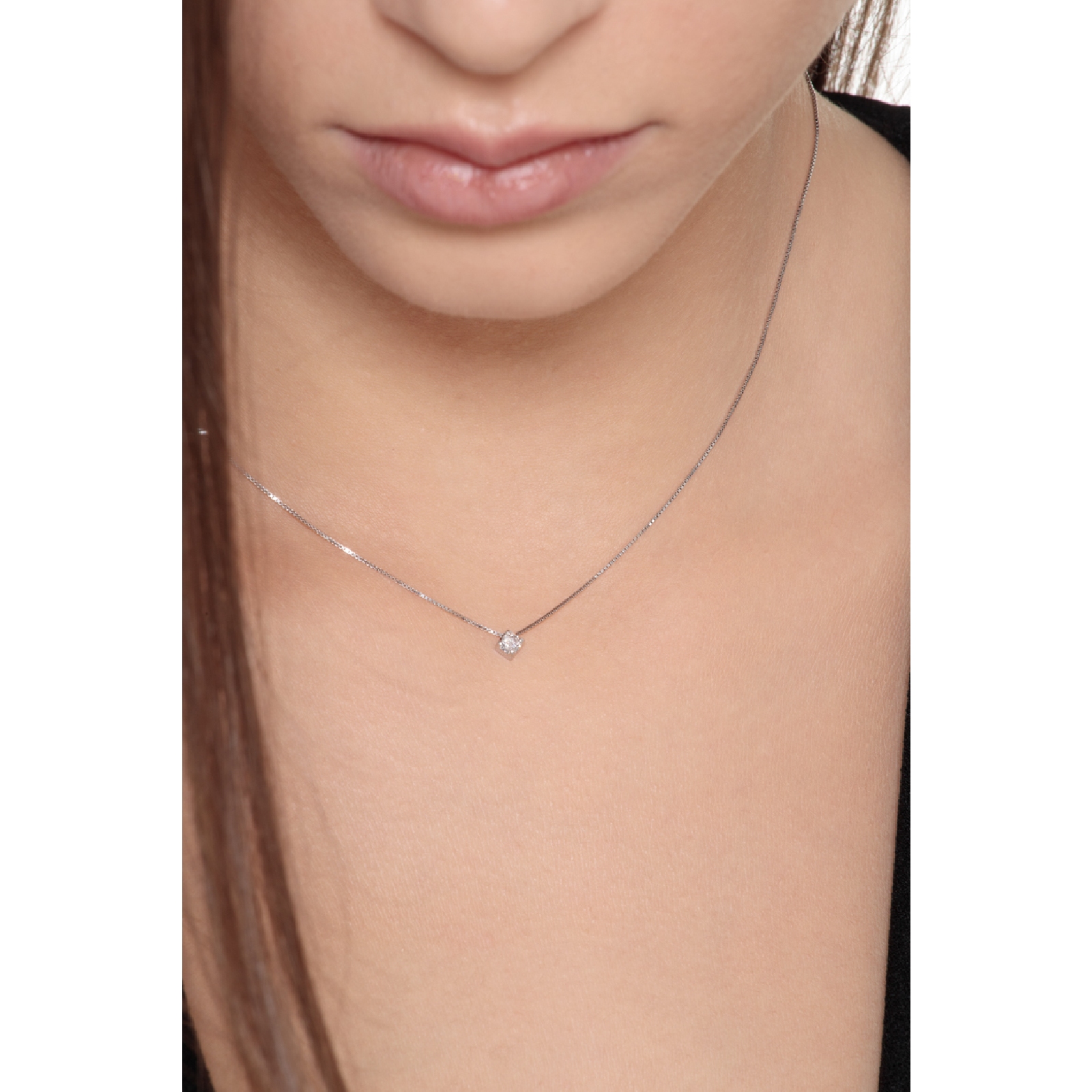 Pendentif solitaire diamant 0.07 ct or blanc 18k