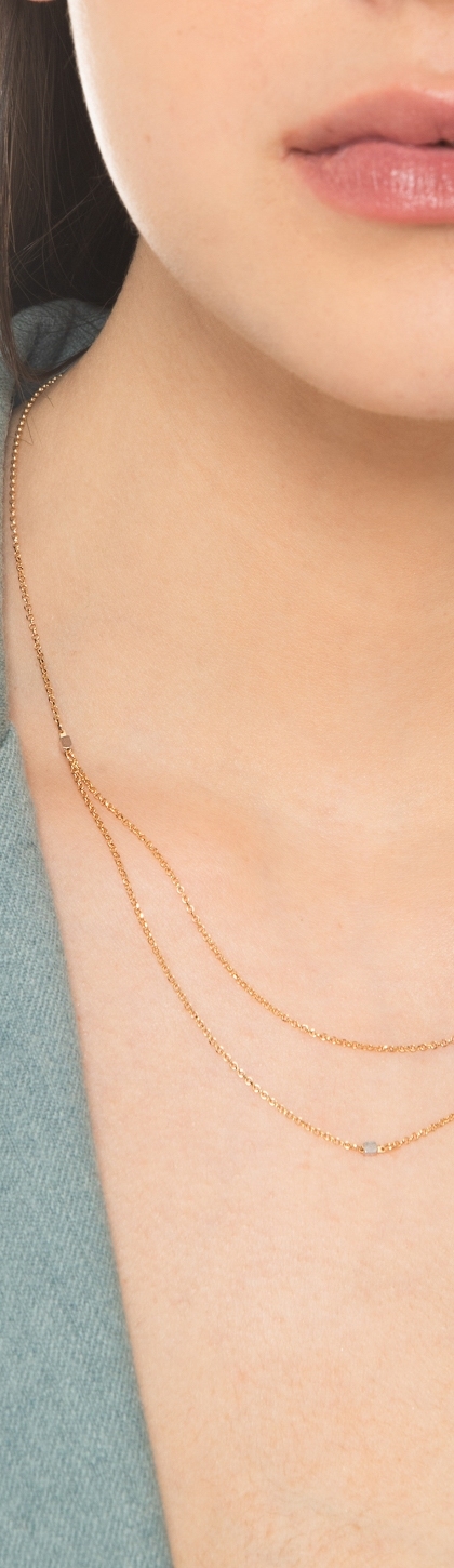 Domino est une collection de bijoux personnalisés en or et en diamant : bracelets, colliers, bagues et boucles d'oreilles qui peuvent être personnalisés avec votre prénom ou vos initiales.