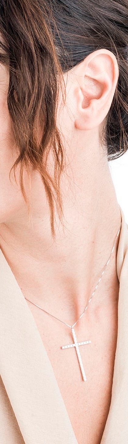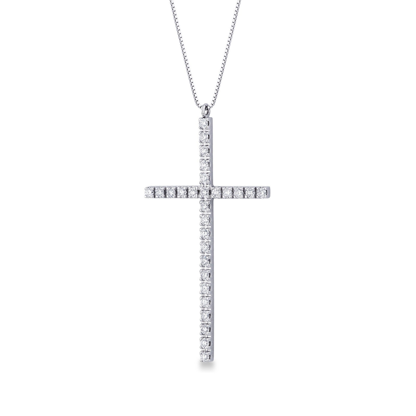 Collier avec croix en or blanc 18 carats avec diamants
