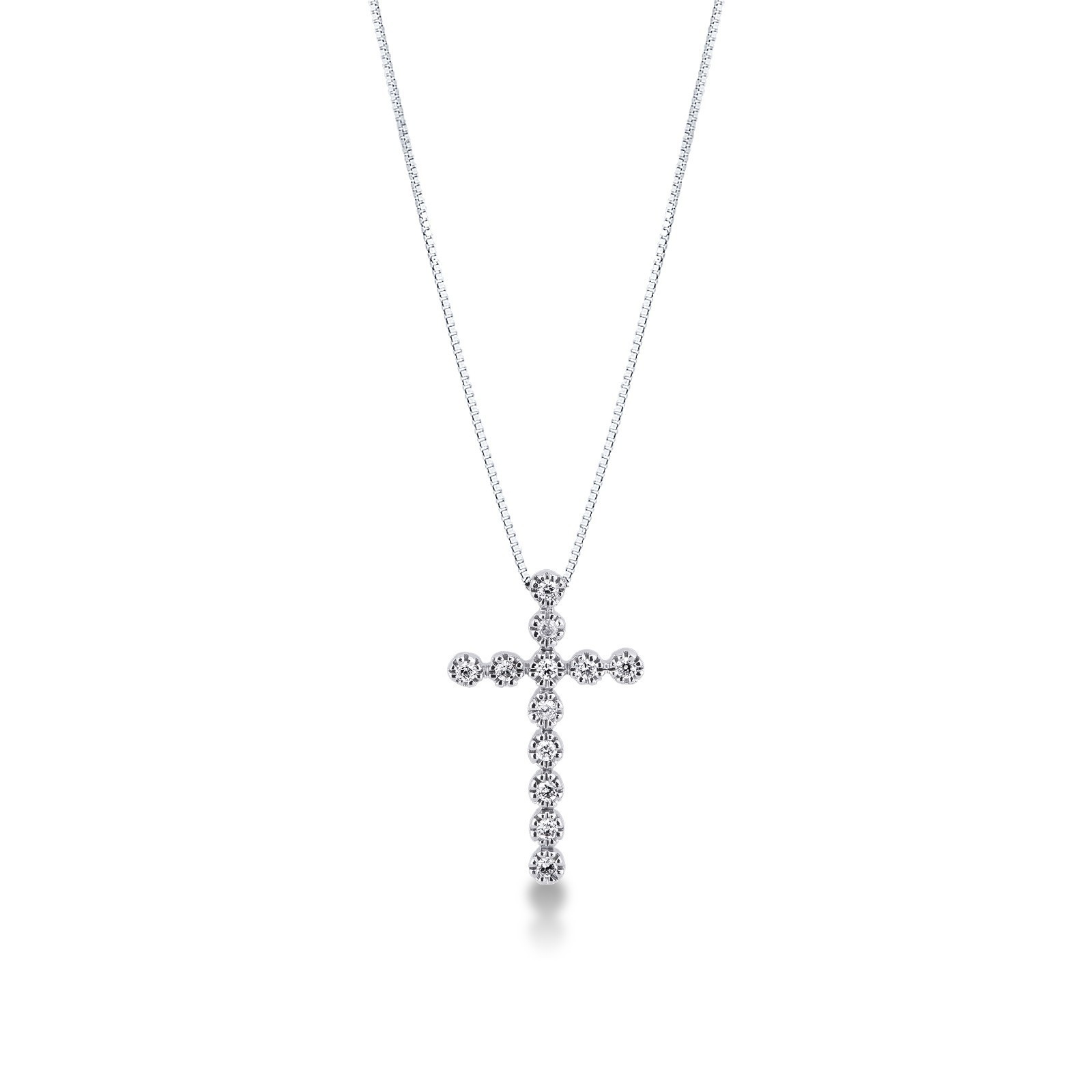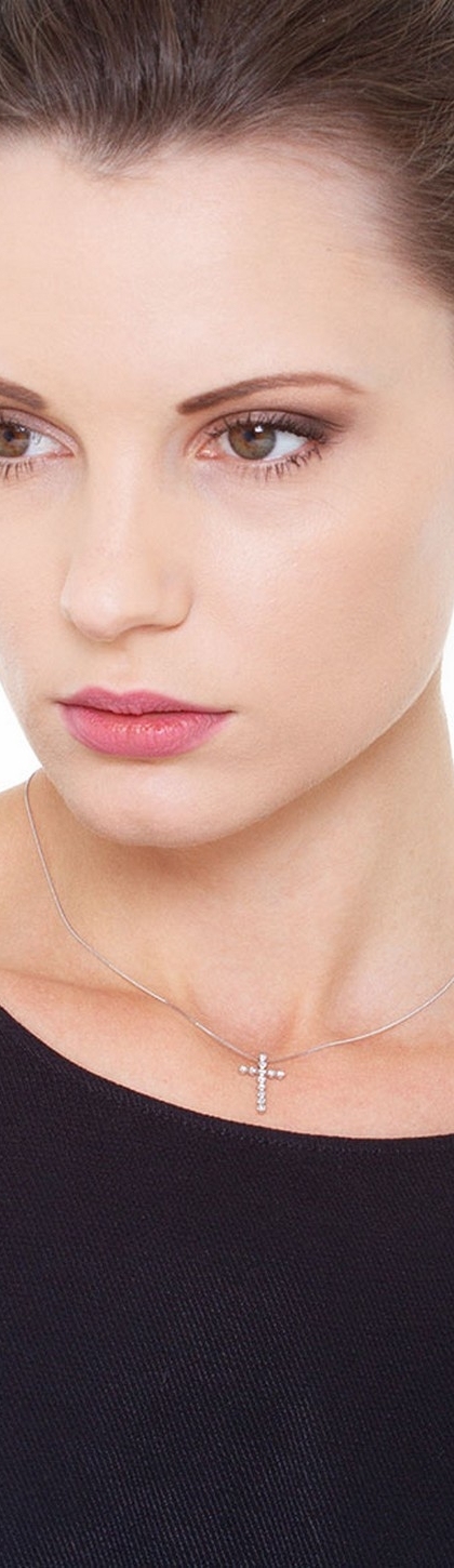 Collier avec pendentif croix en or blanc 18k et diamants