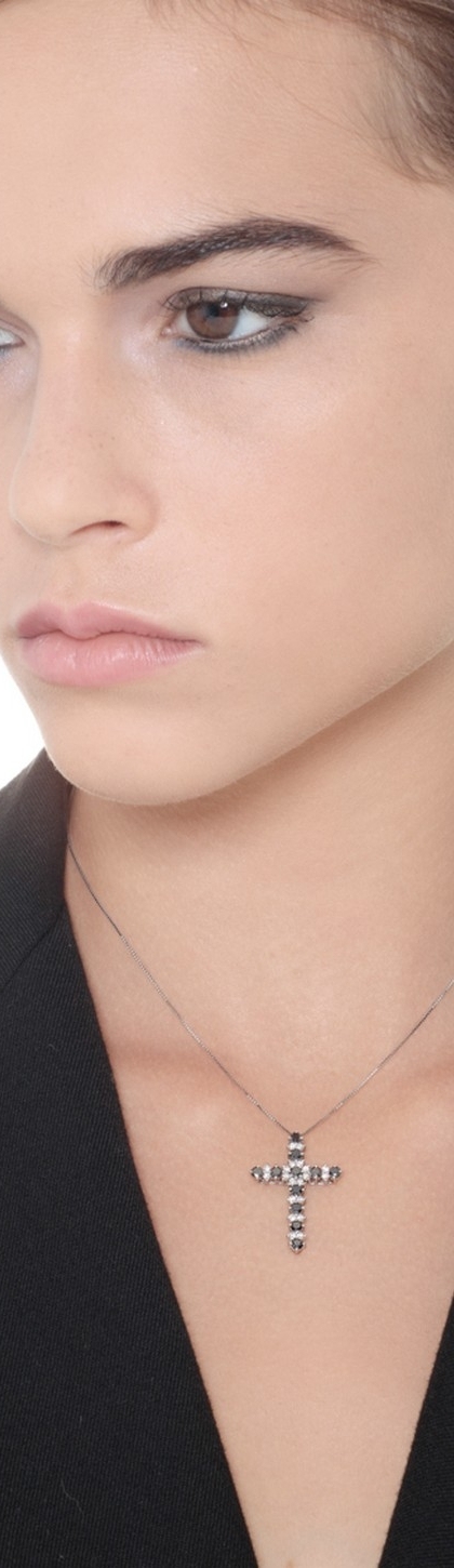 Collier croix or blanc 18k diamants noirs et blancs