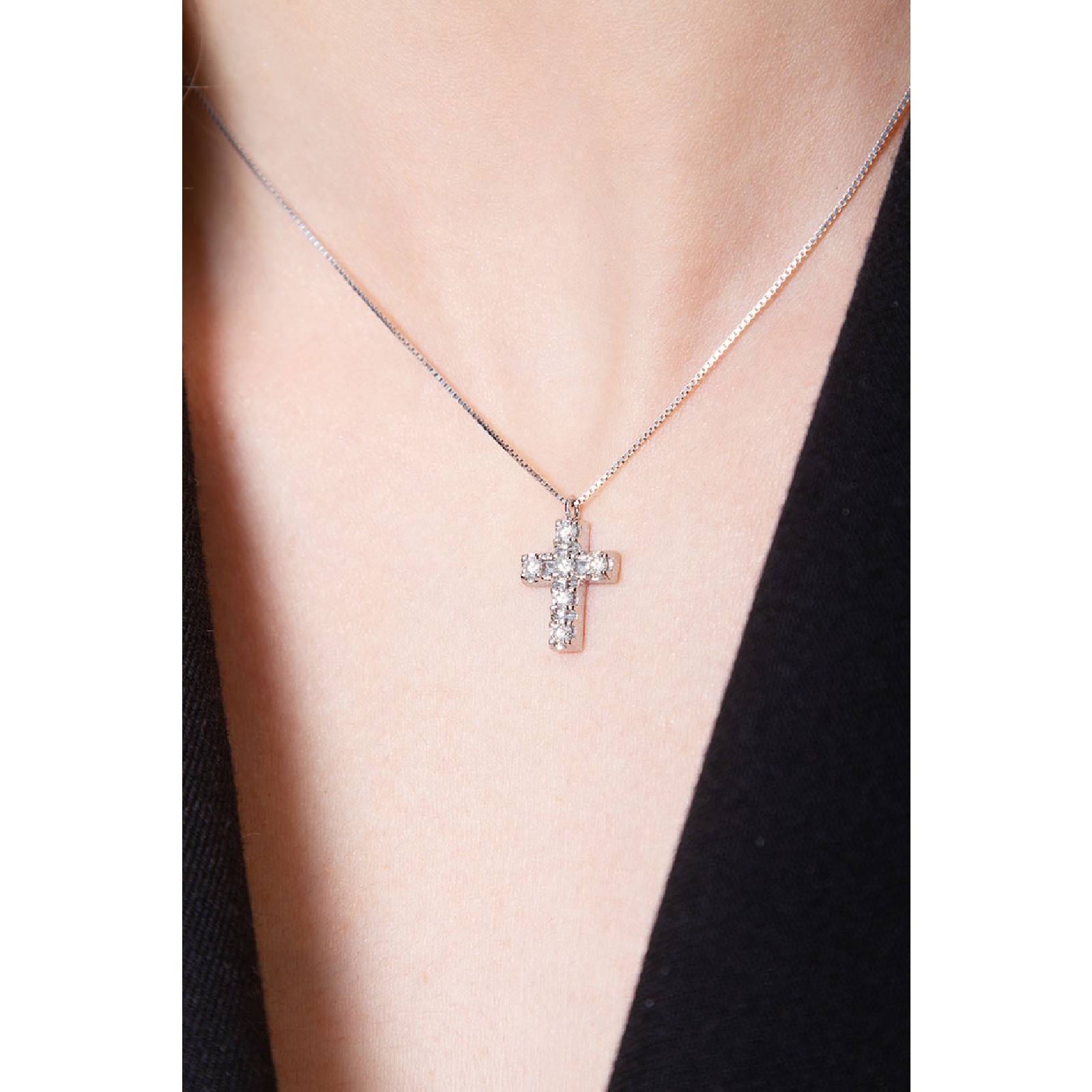Collier en or blanc 18k avec croix ornée de diamants