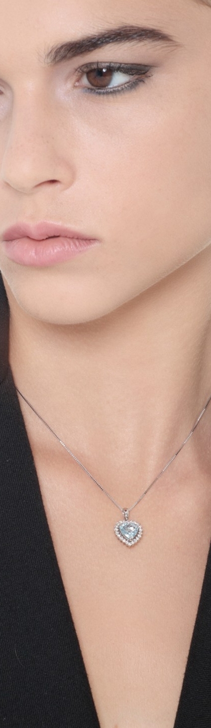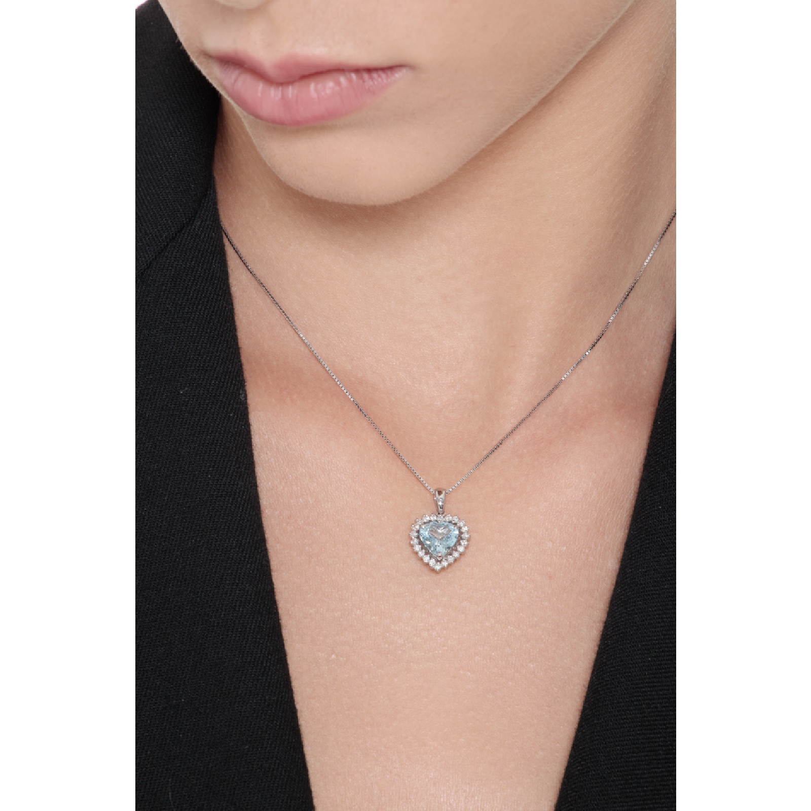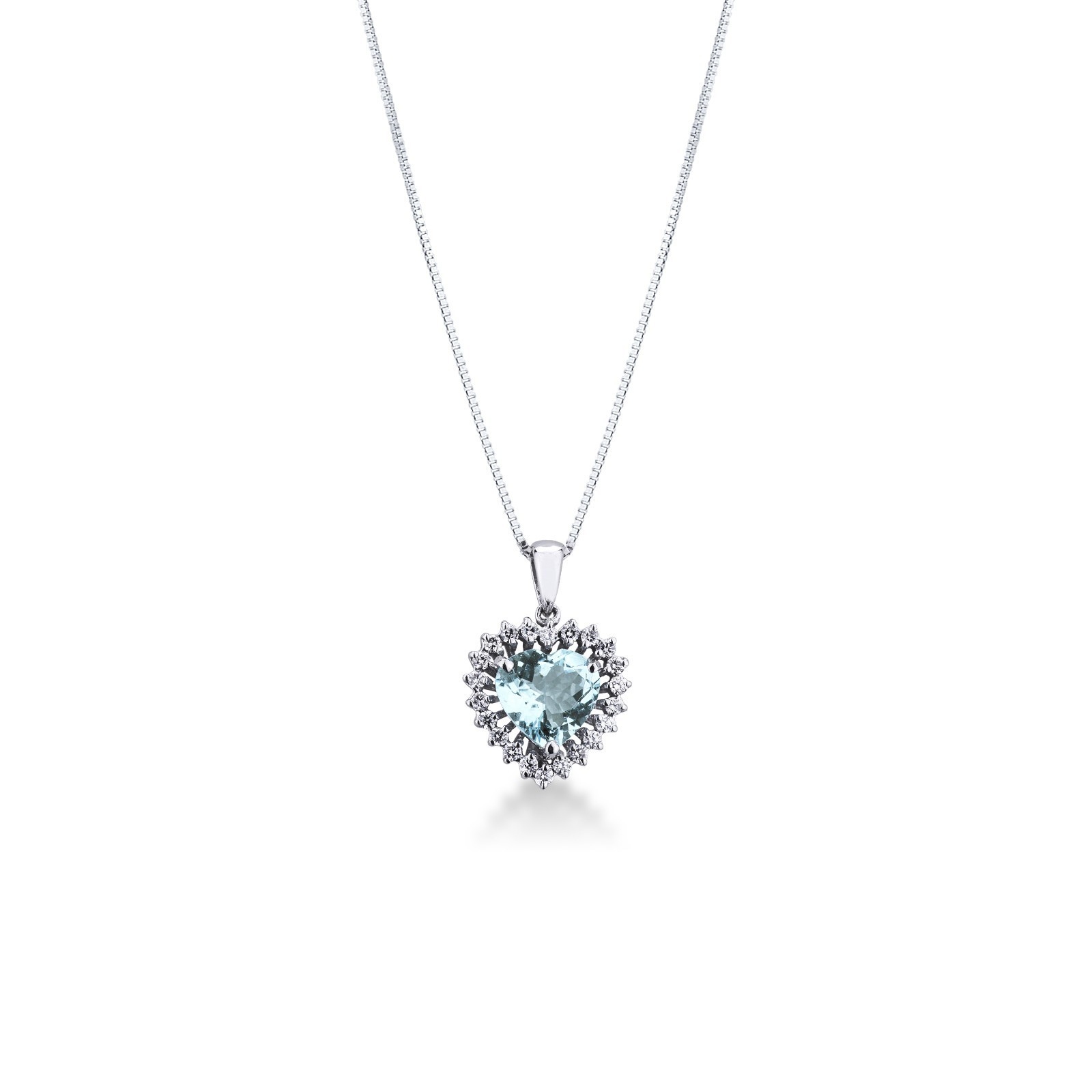 Chaîne en or blanc 18k avec pendentif cœur en aigue-marine et diamants