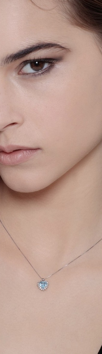 Collier aigue-marine et diamants pendentif à coeur or blanc 18k