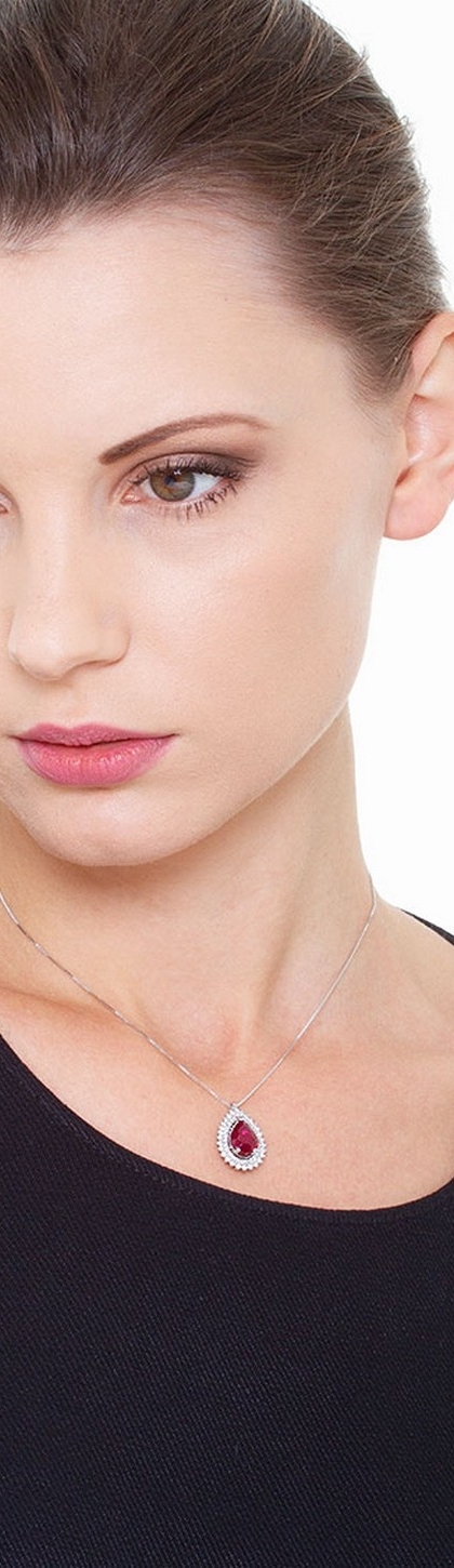 Collier avec pendentif goutte en or blanc 18k et rubis