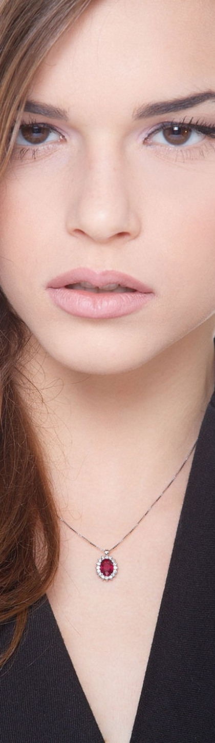 Collier avec rubis ovale et diamants en or blanc 18k