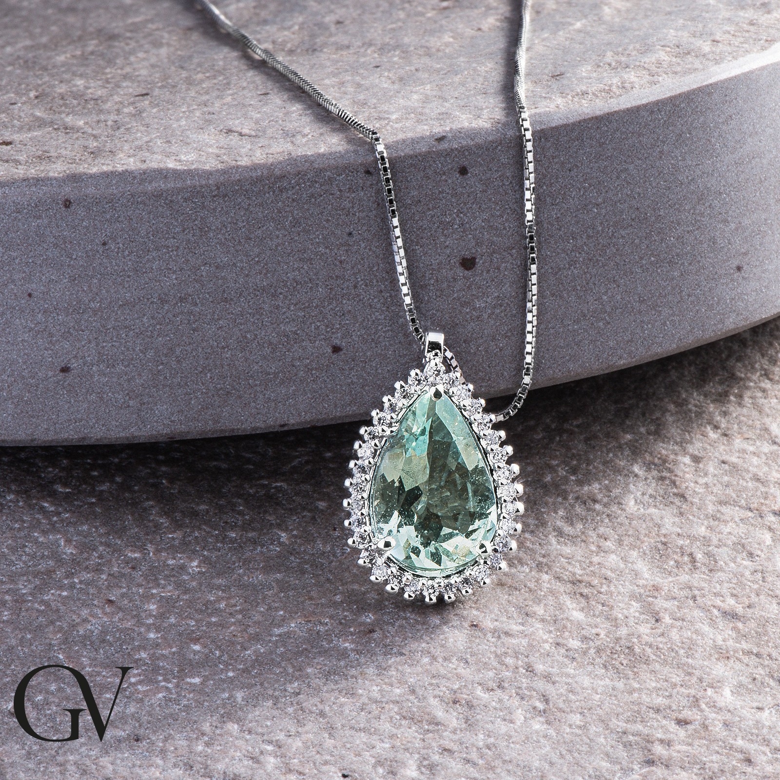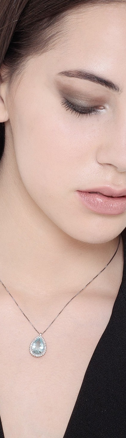 Collier en or blanc 18k avec aiguemarine et diamants