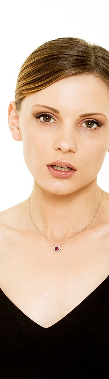 Collier en or blanc 18k avec rubis taille cœur entouré de diamants