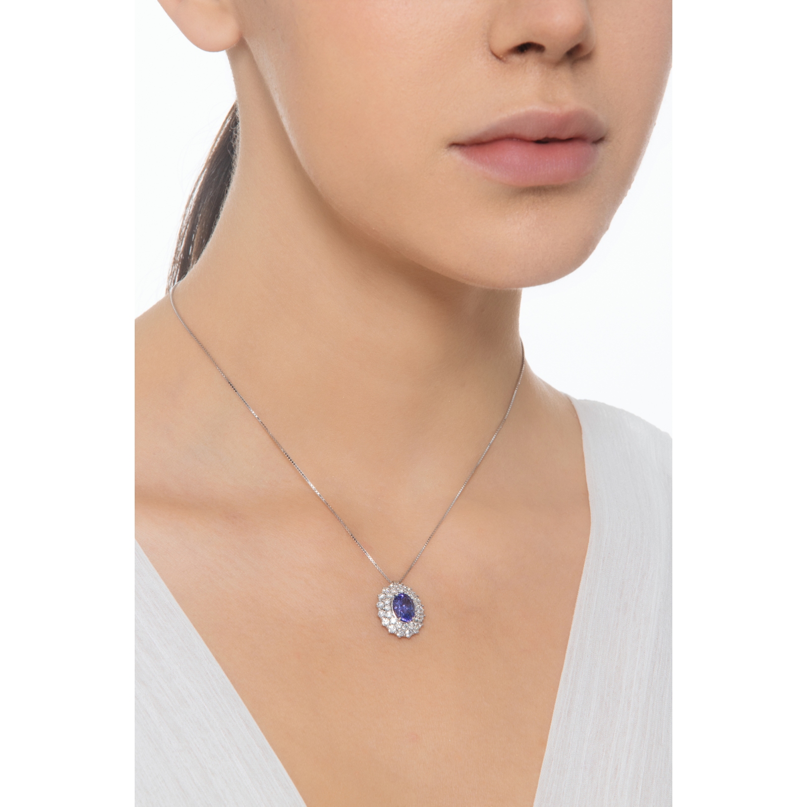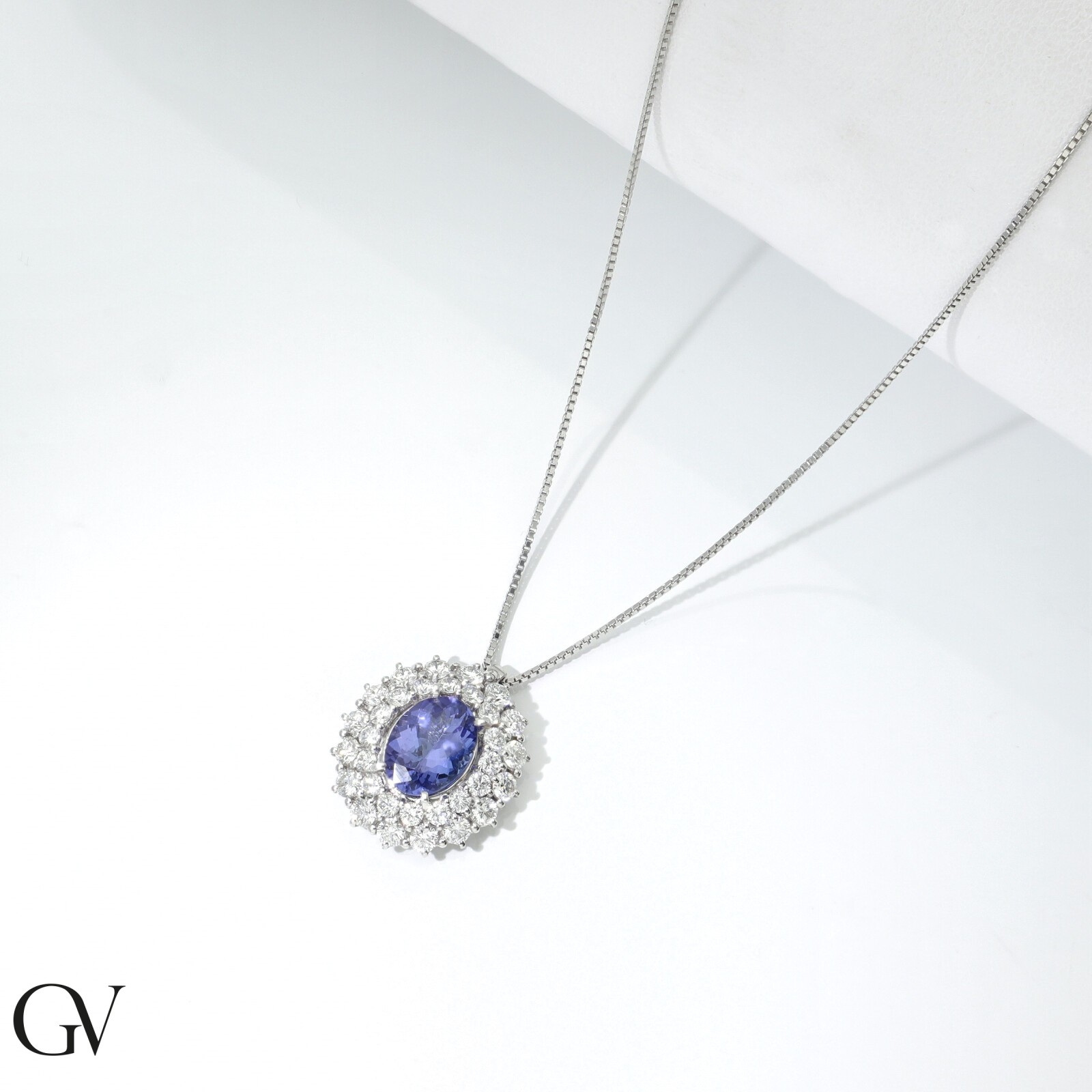 Collier en or blanc 18k avec tanzanite ovale et double halo de diamants
