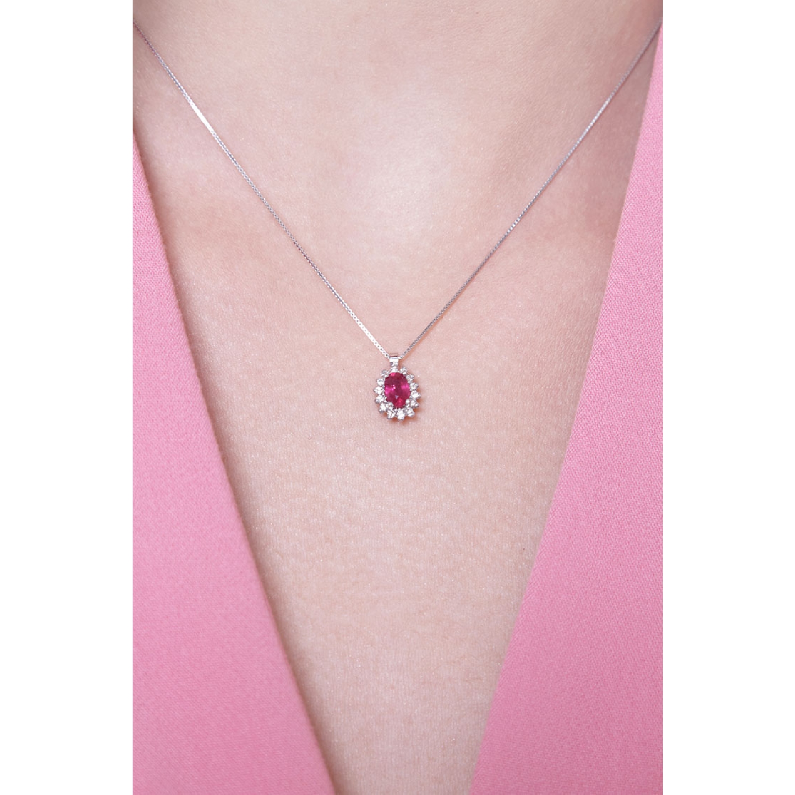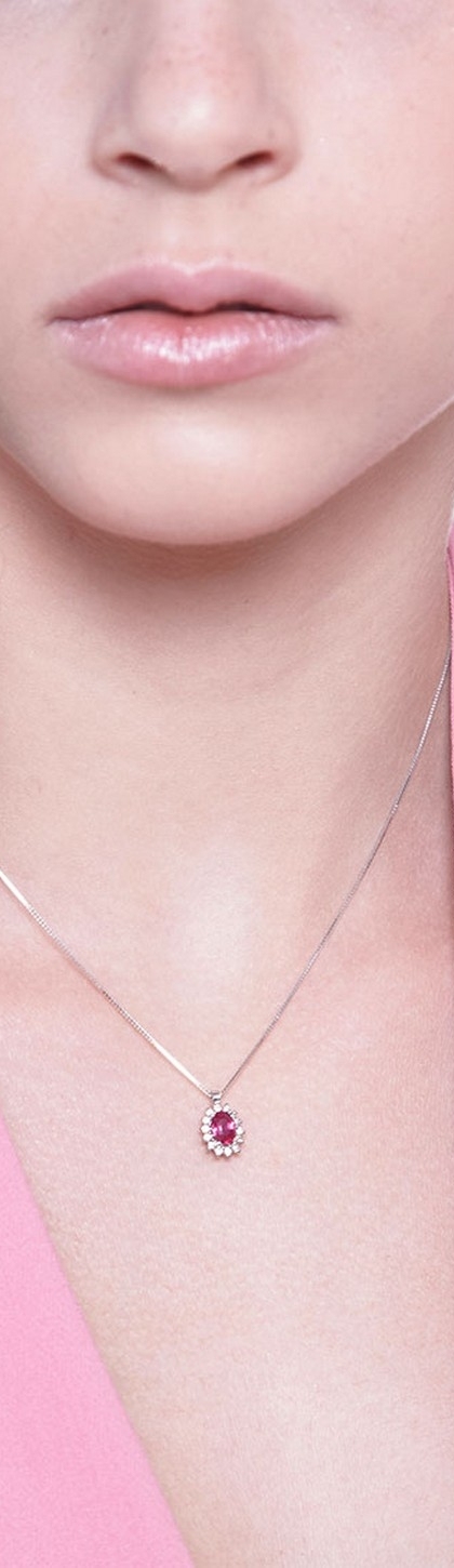 Collier halo en or blanc 18k rubis