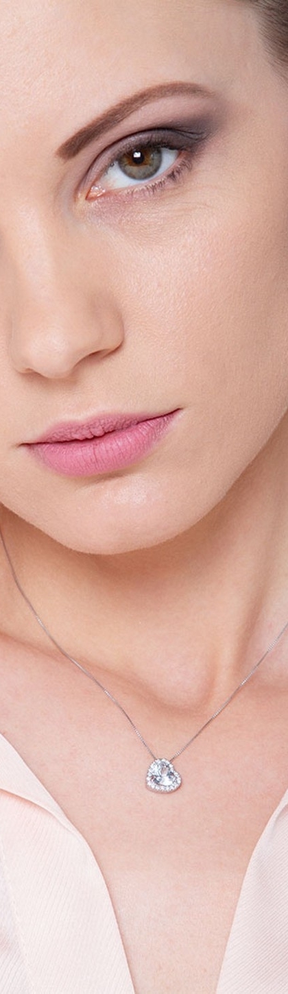 Pendentif collier aigue-marine diamants or blanc 18k