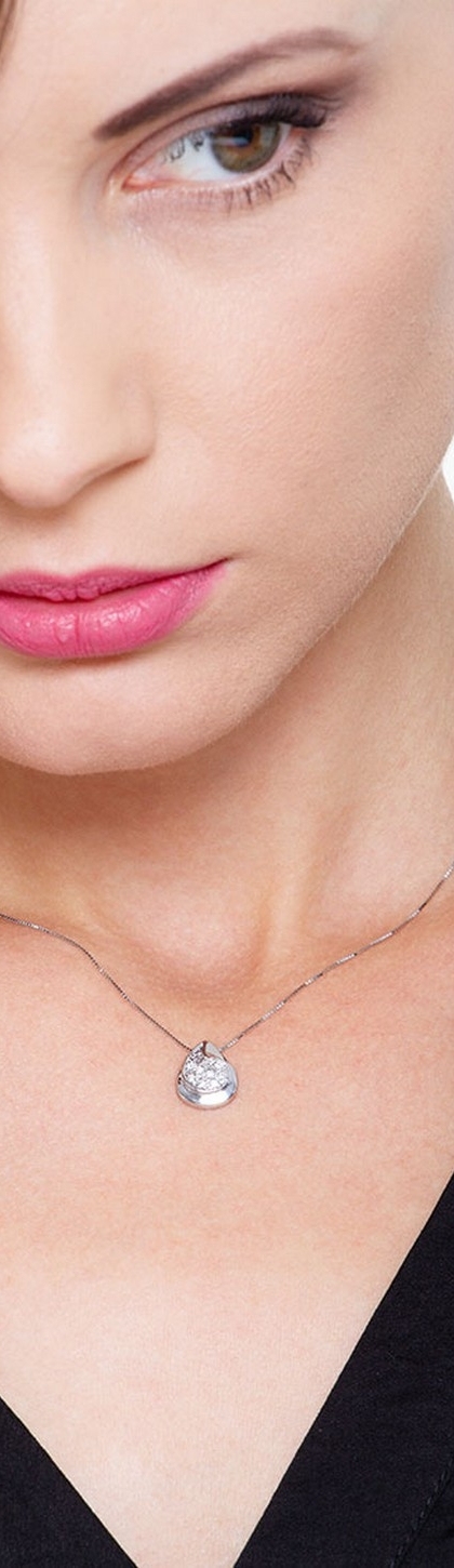 Chaîne en or blanc 18k avec pendentif goutte en diamants