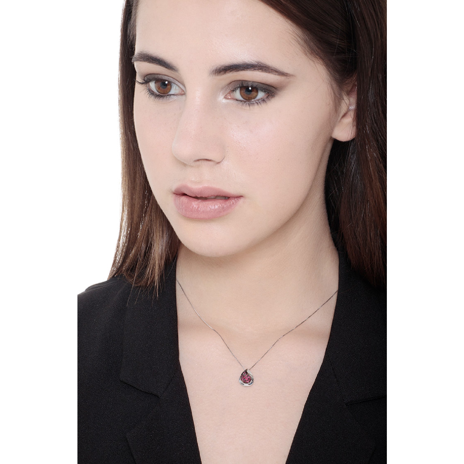 Chaîne en or blanc 18k avec pendentif goutte en rubis