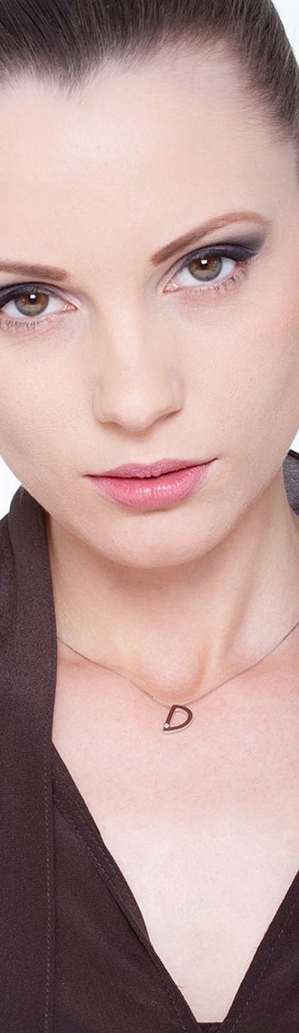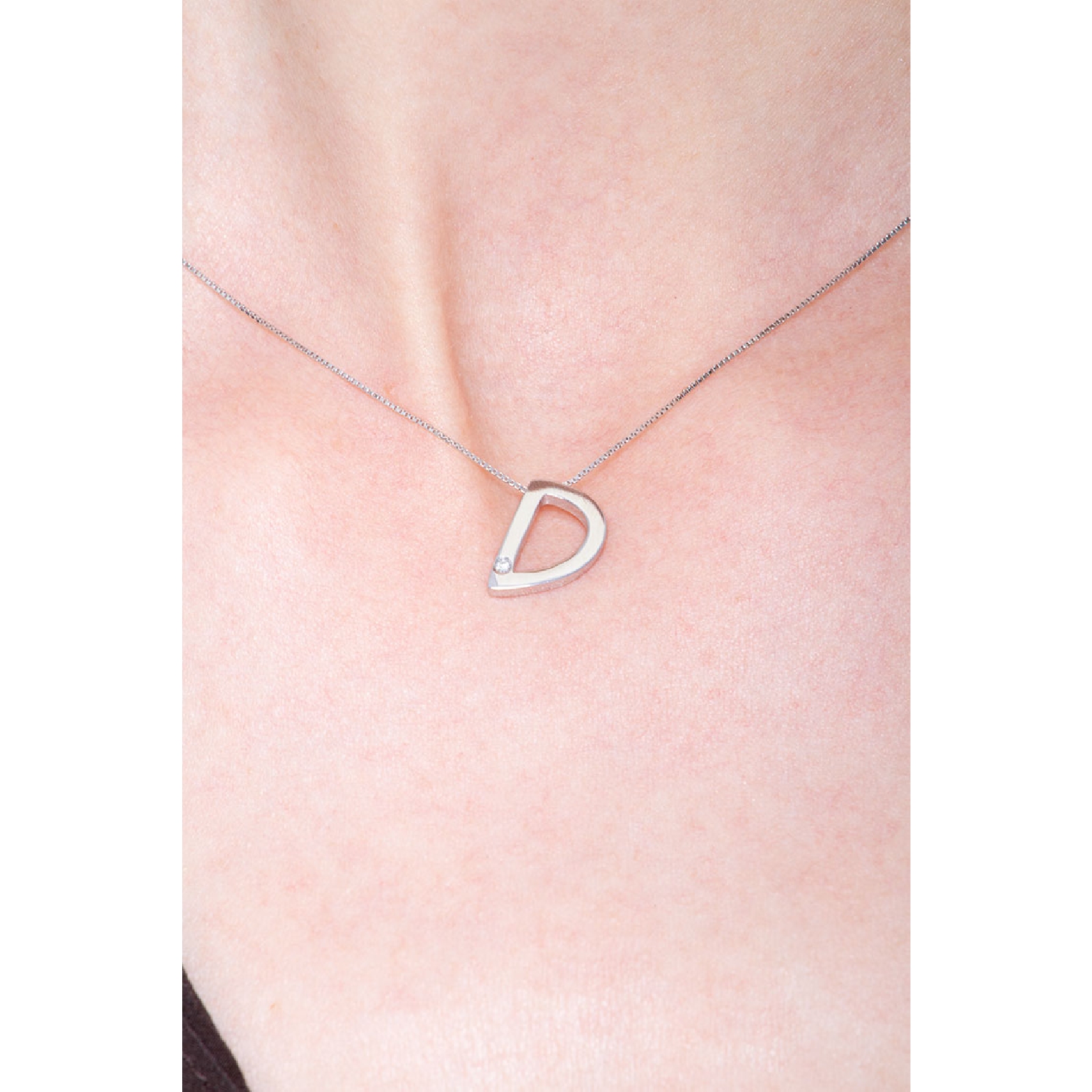 Collier en or blanc 18k chaîne avec lettre D polie ornée d'un diamant taille brillant couleur H pureté VS.
