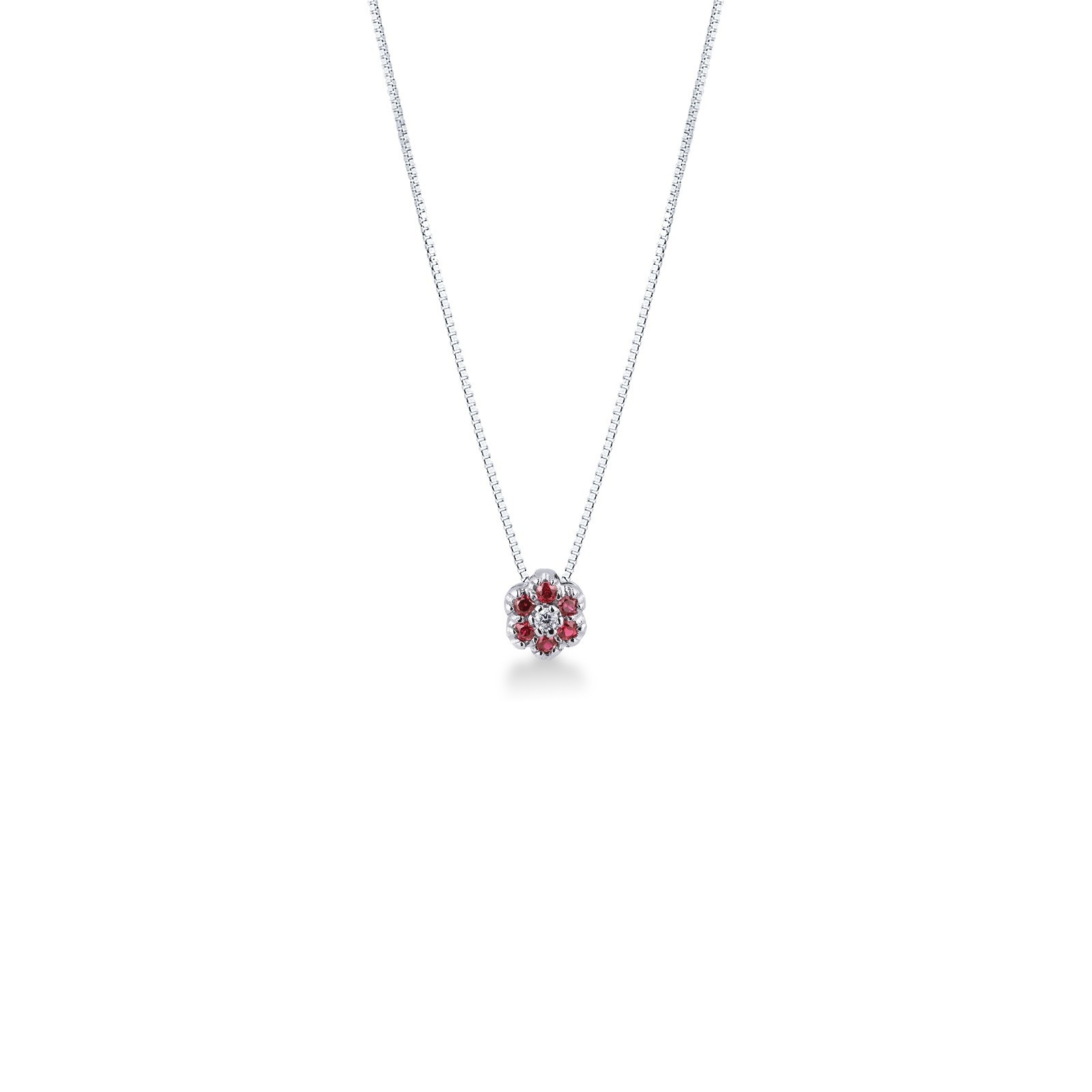 Collier avec pendentif fleur en or blanc 18k avec diamant et rubis