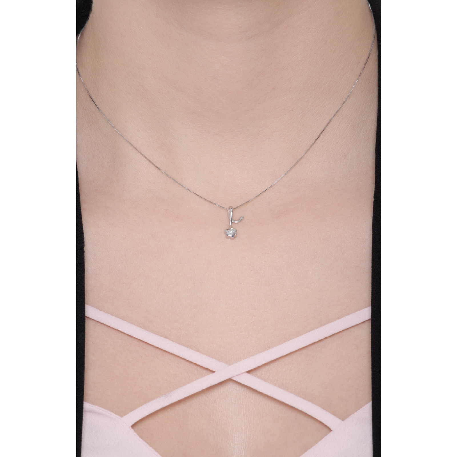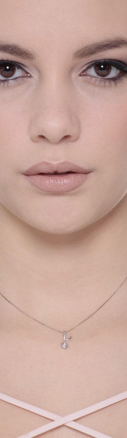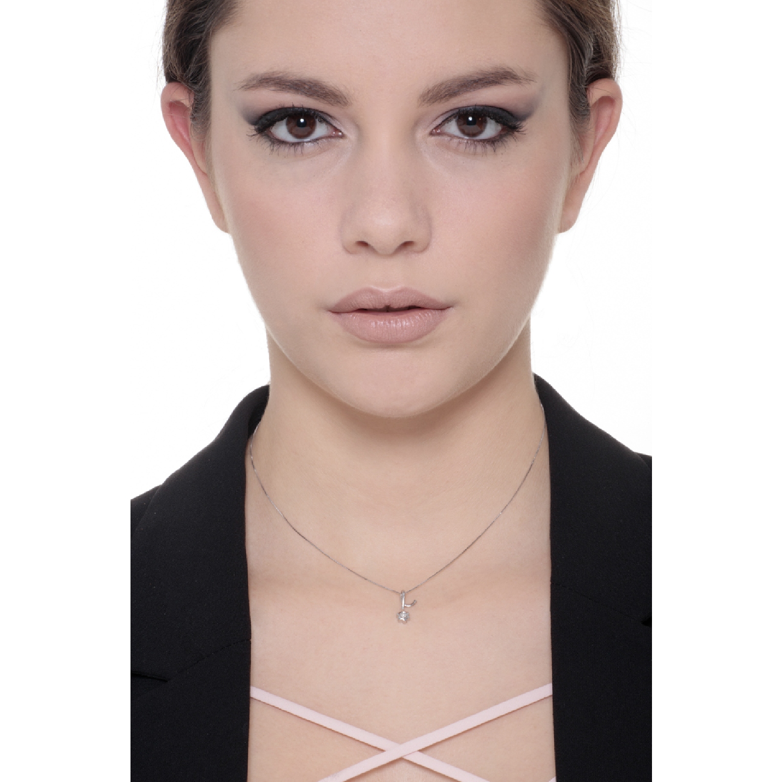 Collier avec pendentif fleur en or blanc 18k avec diamant