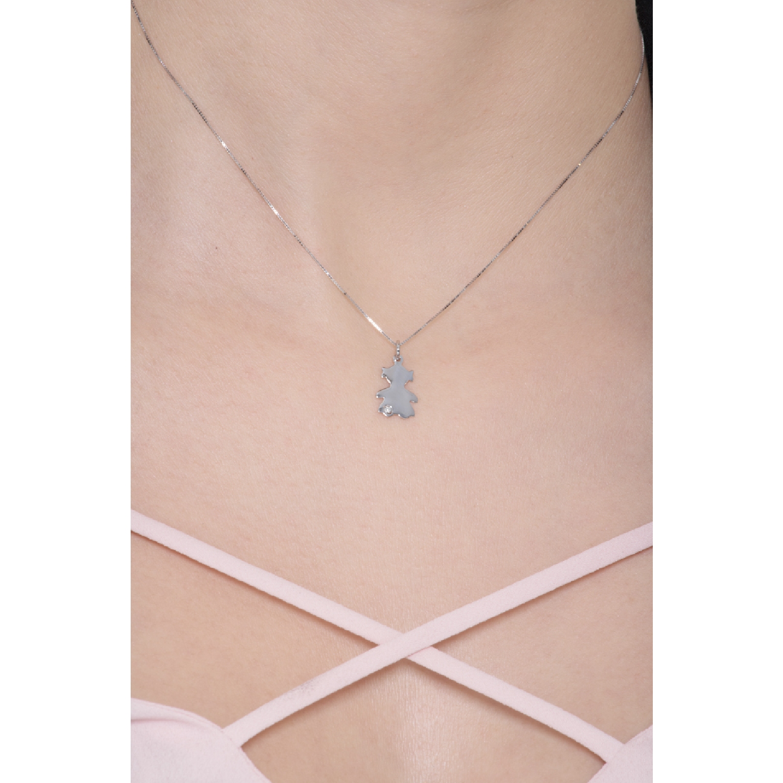 Collier avec Pendentif Petite Fille en Or Blanc 18k avec Diamant
